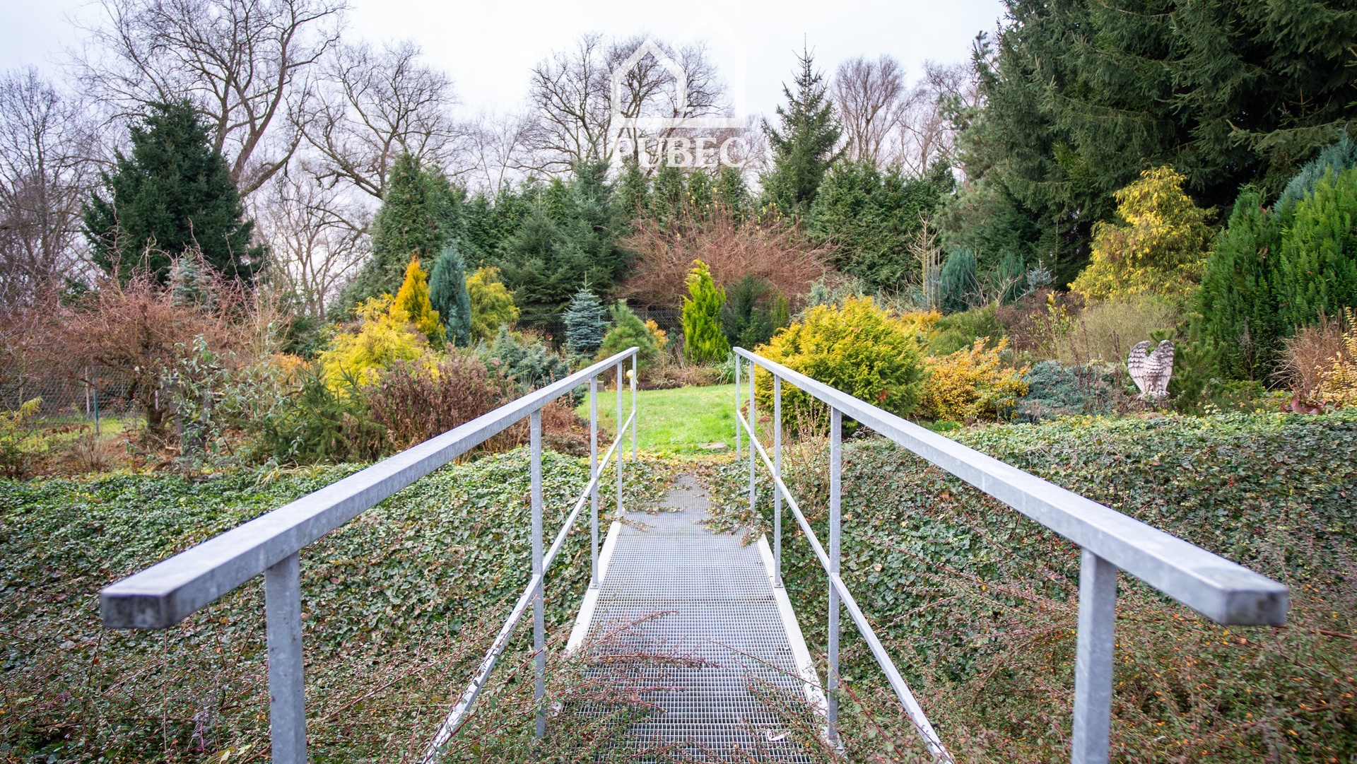 Zázemí na pozemku - 2 garáže, vnitřní zázemí s krbem, velkorysá zděná podsklepená kolna s půdou, kryté venkovní posezení s krbem, bazén, skleník a klidová parková část zahrady.