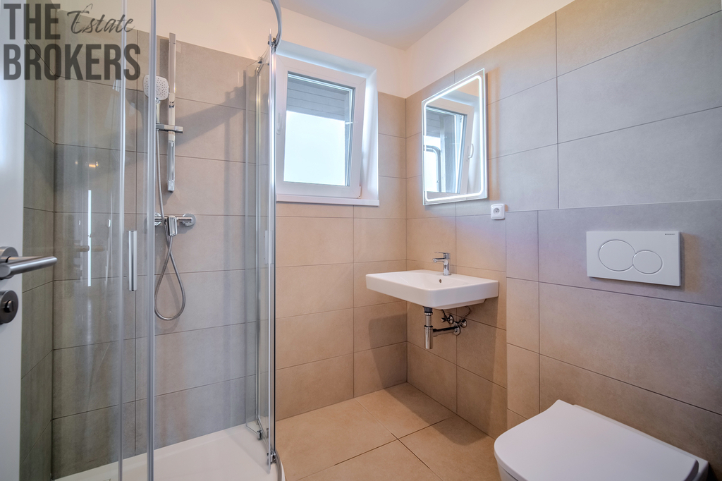 Nabízí dostatek úložného prostoru, koupelnu s toaletou na každém patře a integrovanou garáž pro maximální pohodlí. Je myšleno také na tři vstupy do zahrady – z obývacího pokoje přímo na zahradní terasu (výrobce BEST), přes garáž a venkovní brankou. Dvojité oddělující zdi s tepelnou a akustickou izolací spolu s dalšími prvky, jako je podlahové vytápění - ovládané pro každou místnost zvlášť, plastová okna s trojskly a tepelné čerpadlo, zaručují vysokou energetickou úspornost. Tepelné čerpadlo zároveň umožňuje dodatečnou funkci klimatizace celého domu. Umístění jednotky TČ je možné si zvolit.