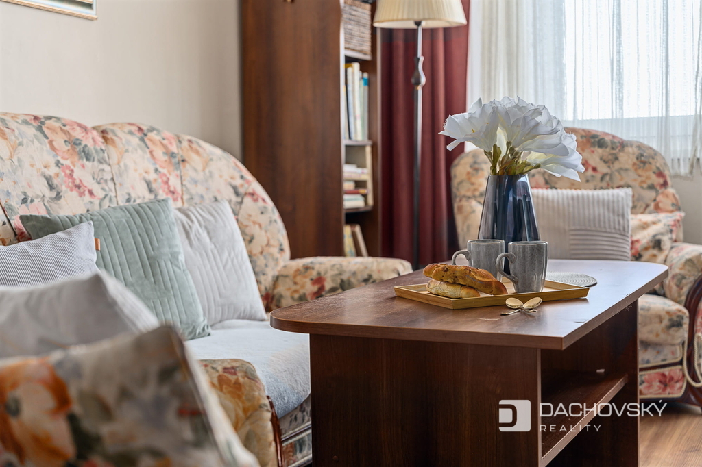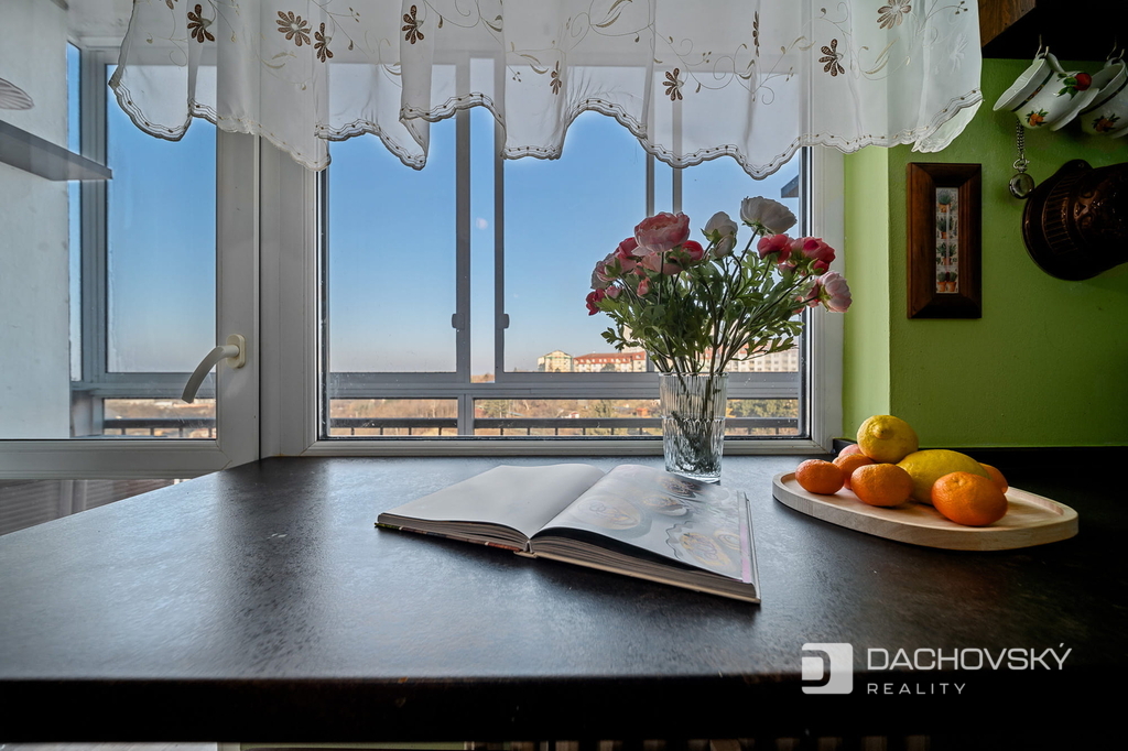 Bytová jednotka je prakticky řešena a působí velmi vzdušně. Vstup do bytu vede do prostorné chodby s úložnými prostory. Z chodby je přístup do obývacího pokoje, ze kterého se vstupuje do ložnice. Další samostatný pokoj je vhodný jako dětský pokoj nebo pracovna. Kuchyně je vybavena plynovým sporákem, elektrickou troubou, digestoří, lednicí a mrazákem. Z kuchyně je přímý vstup na zasklenou lodžii, která poskytuje krásný výhled do okolí.
