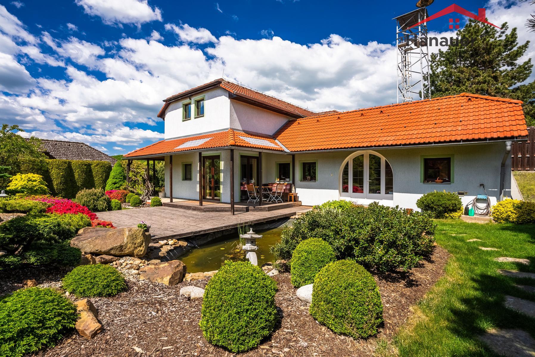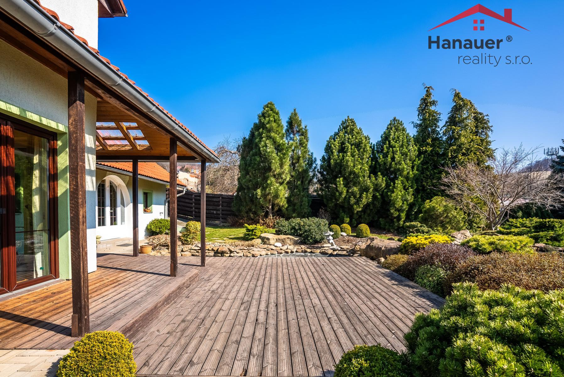 Zaujaly vás fotografie námi nabízeného rodinného domu a jeho Americký styl? Terasy kolem domu, velká okna, prostorný interiér se schodištěm, z části otevřený prostor z 1. do 2. podlaží, různé linie střechy. Poloha rodinného domu v klidné, lukrativní a vyhledávané části těsně na okraji města Ústí nad Labem v obci Chuderov. Takové, bydlení mimo, ruch města, ale v podstatě ve městě, pouhých 10 minut autobusem či autem od centra, jak se říká: co by dup. Zastavěná plocha domu je 649 m2, přičemž užitná plocha je 310 m2. Celková plocha je však 1884 m2. A co tvoří rozdíl mezi celkovou plochou a zastavěnou plochou? Je to úžasná a udržovaná zahrada v asijském stylu o rozloze 1235 m2, která vám nabízí možnost trávení volného času odpočinkem s hezkou knihou, kávou nebo sklenkou vína. Dům, který vám nabízíme, disponuje 2 byty. Jeden je o velikosti 3+kk s plochou 70 m2 a nachází se v jedné části domu, kdy v 1. nadzemním podlaží je kuchyně s obývacím pokojem a koupelnou. Ve 2. nadzemním podlaží se nachází 2 pokoje s koupelnou a šatnou. V tuto chvíli majitelé tento byt dlouhodobě pronajímají spolehlivému nájemníkovi. Pokud bude nový majitel souhlasit s touto skutečností, nájemníci rádi zůstanou. To by pro nového majitele, mohl být bonus, pokud by koupi domu řešil Hypotečním úvěrem. Nájem by mohl pomoci při jeho splácení. Druhý byt, ve kterém bydlí majitelé je o velikosti 7+kk, kdy se v 1. nadzemním podlaží nachází kuchyně s jídelnou, obývacím pokojem, malou pracovnou, technickou místností, místností na plynový kotel a koupelnou se sprchovým koutem a toaletou. 2. nadzemní podlaží disponuje ložnicí, 2 dětskými pokoji, malou obývací místností, šatnou a velkou koupelnou s rohovou vanou a toaletou. Z obývacího pokoje je přímý vstup na terasu a úžasný výhled do zahrady se zahradním jezírkem a potůčkem s přepadem. A to není vše! Zahradu krášlí japonské javory, ornamentální borovice či modřín, korejské jedle, převislé smrky a modříny, různé odrůdy borovic nebo kanadská tsuga. V zadní části zahrady se nachází ovocné stromy, jako jabloň, švestka, meruňka a broskvoň. Možná vás napadá otázka: Jak celou zahradu zalévat? I toto majitelé vyřešili, formou automatické závlahy, která je řešena čtyřmi okruhy a je napojena na vlastní studnu na pozemku. Zahradní nábytek nebo zahradní nářadí můžete pohodlně uskladnit v zahradním domku. Pozemek je oplocený a je zde možnost použít 2 vjezdy. Jeden je přímo z ulice a druhý se nachází za domem. Je zde možné parkovat minimálně 5 automobilů s možností připojení elektromobilu. A technické údaje? Dům je postaven z kvalitních materiálů-sedlová střecha, izolovaná vatou, střešní, pálené tašky Bramac, plastová okna, betonové základy, cihlové obvodové stěny Porotherm, zateplení domu polystyrenem o tloušťce 100 mm Vytápění domu zajišťuje lokální plynový kotel značky Buderus. Tím je zajištěn i ohřev teplé vody v zásobníku stejné značky. Na pozemku je i vlastní čistička odpadních vod. Samozřejmostí je napojení na veškeré inženýrské sítě a zabezpečovací systém Rokonet, a to včetně požárních hlásičů. Měsíční náklady na chod domu se pohybují kolem 12.500,-Kč. K dispozici máme i projektovou dokumentaci, do které je možno nahlédnout při prohlídce domu. Pokud hledáte právě takovou nemovitost, přijďte se podívat. Domluvte si osobní prohlídku a nechte se řídit svými pocity, které vám napoví. V případě, že se rozhodnete pro koupi domu a financování hypotečním úvěrem, máme k dispozici hypotečního specialistu, který pracuje pro více bank a dokáže vám tak nastavit pro vás výhodné podmínky pro získání tohoto úvěru. A převod energií? I toto vám dokážeme zprostředkovat přímo na naší pobočce.