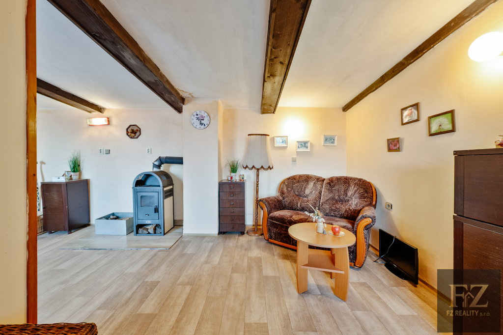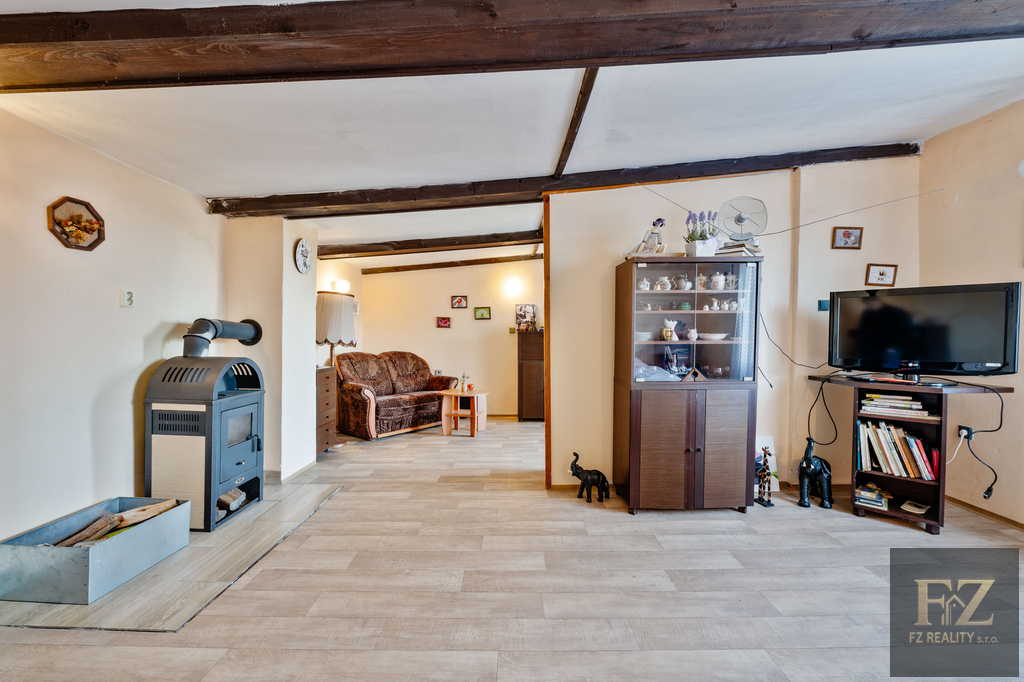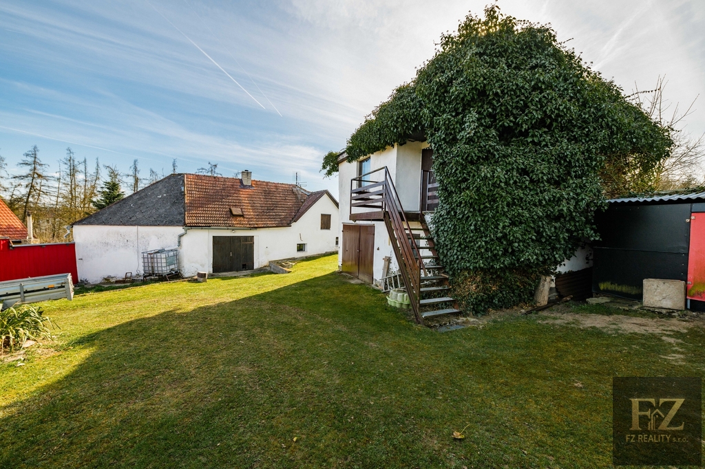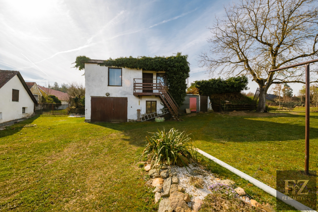 Nemovitost stojí na okraji obce v klidné části, kde si můžete užívat soukromí a krásný výhled do okolní přírody přímo ze zahrady.