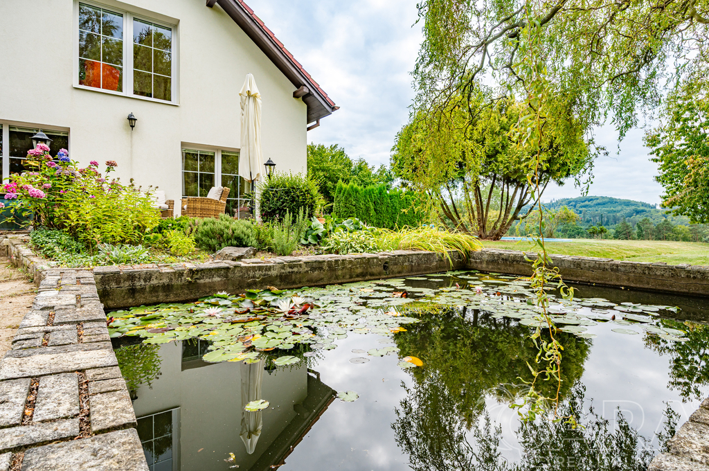 Stylový rodinný dům 4+kk se zahradou, bazénem a jezírkem v Radonicích u Divišova