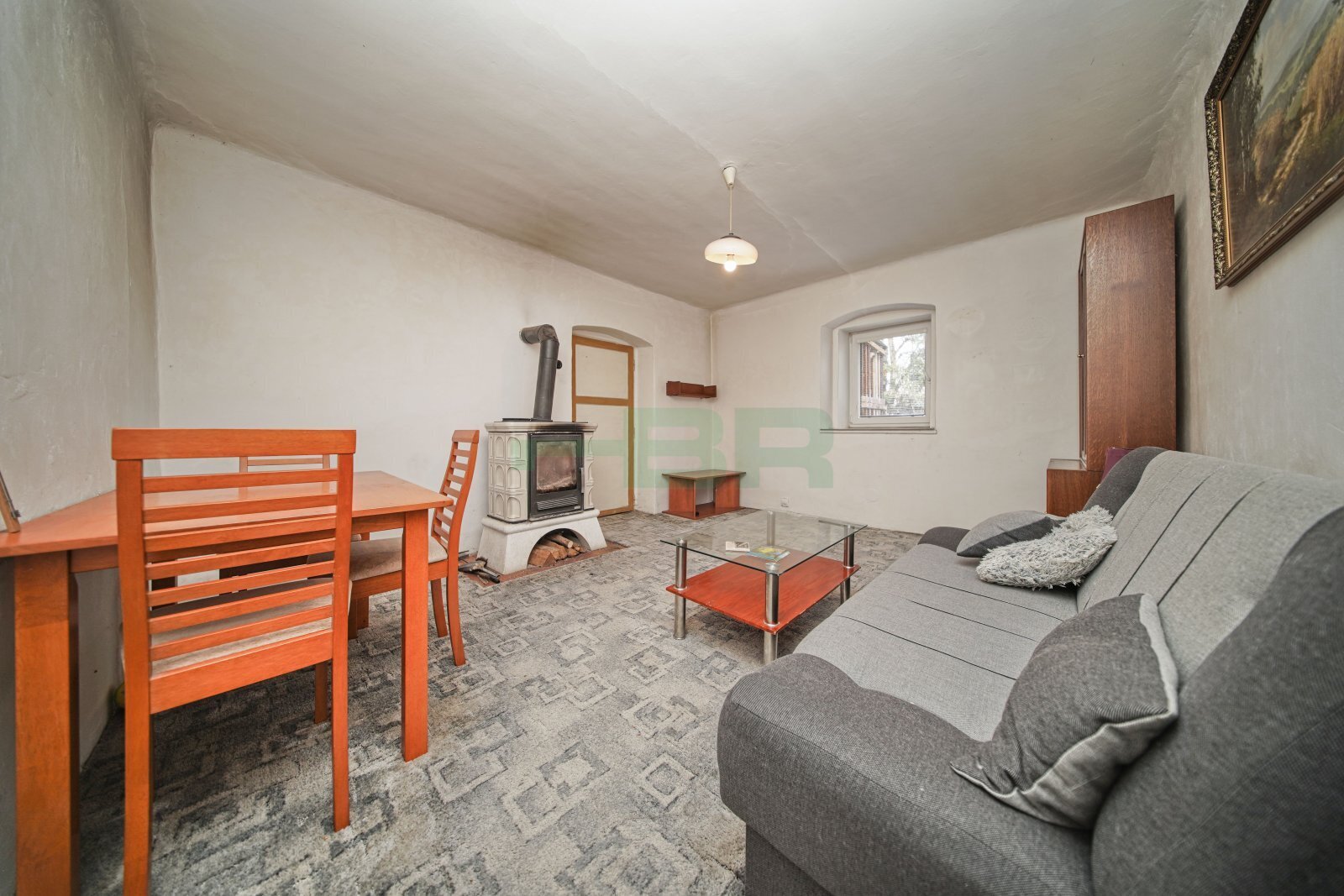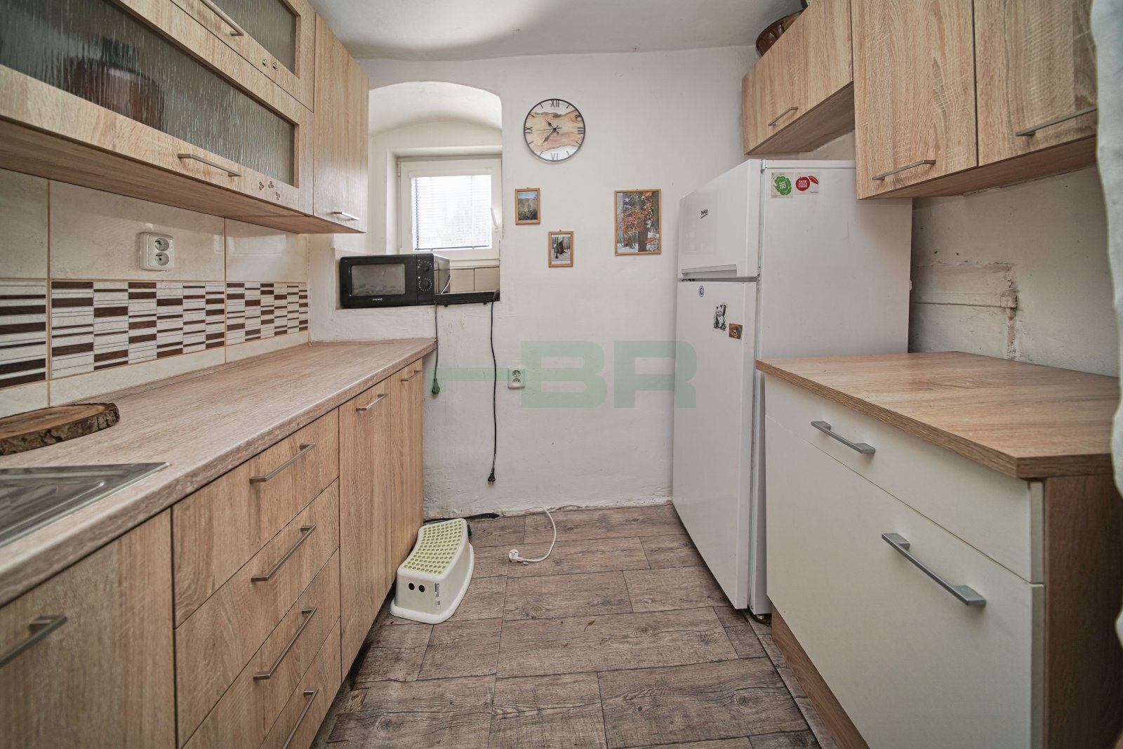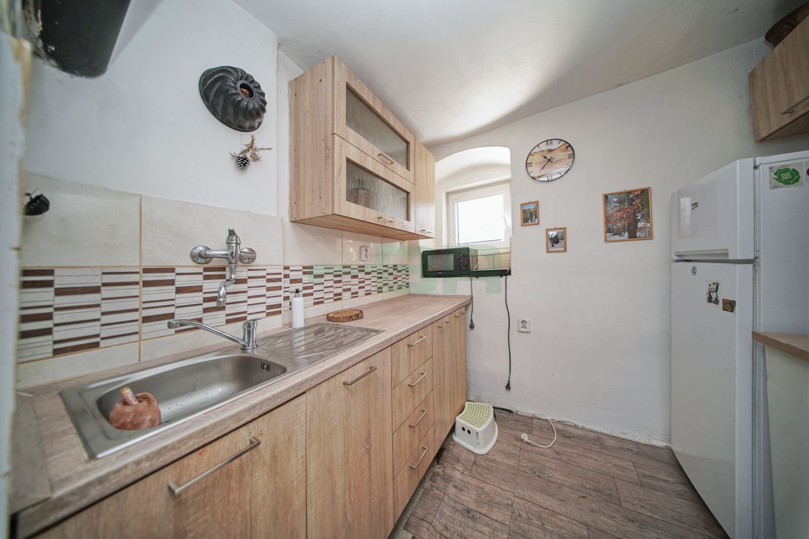 Zařízený nábytkem – viz foto. Kuchyňská linka s lednicí, jednoplotnou a mikrovlnkou.