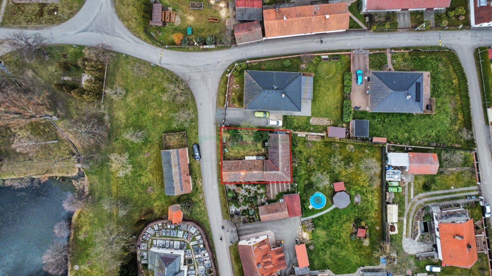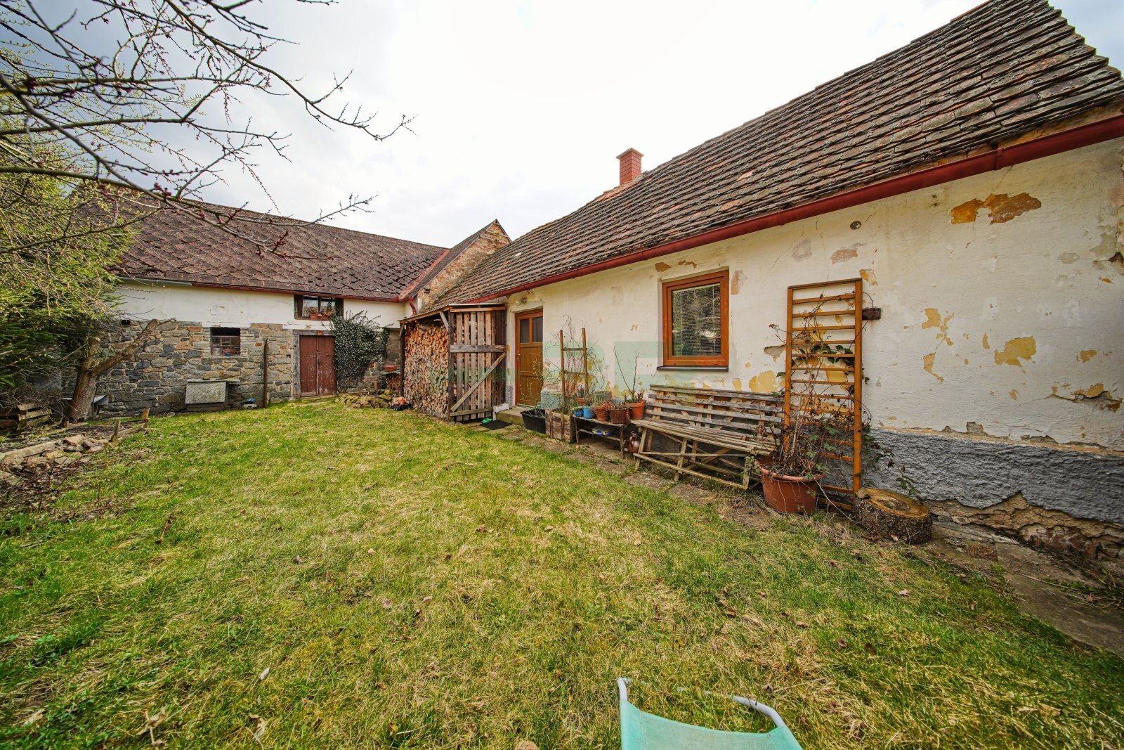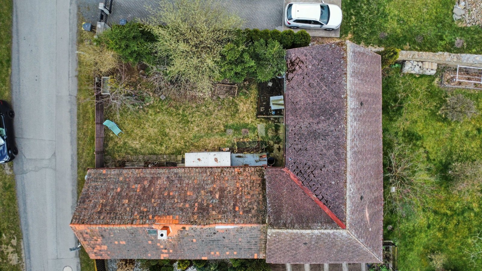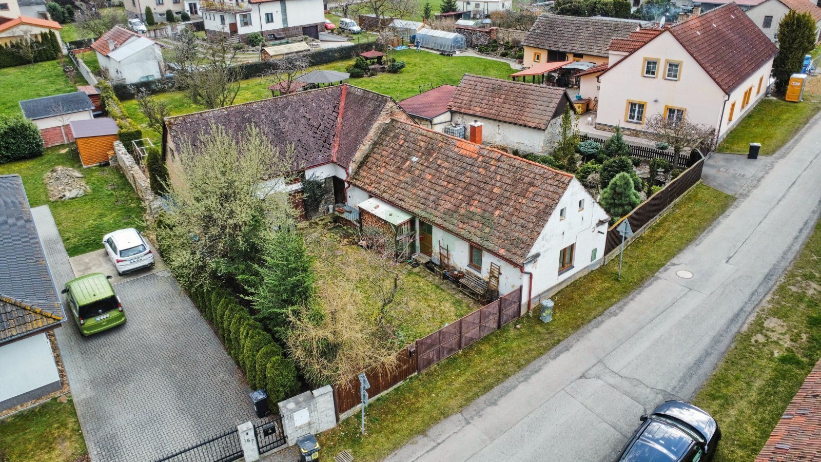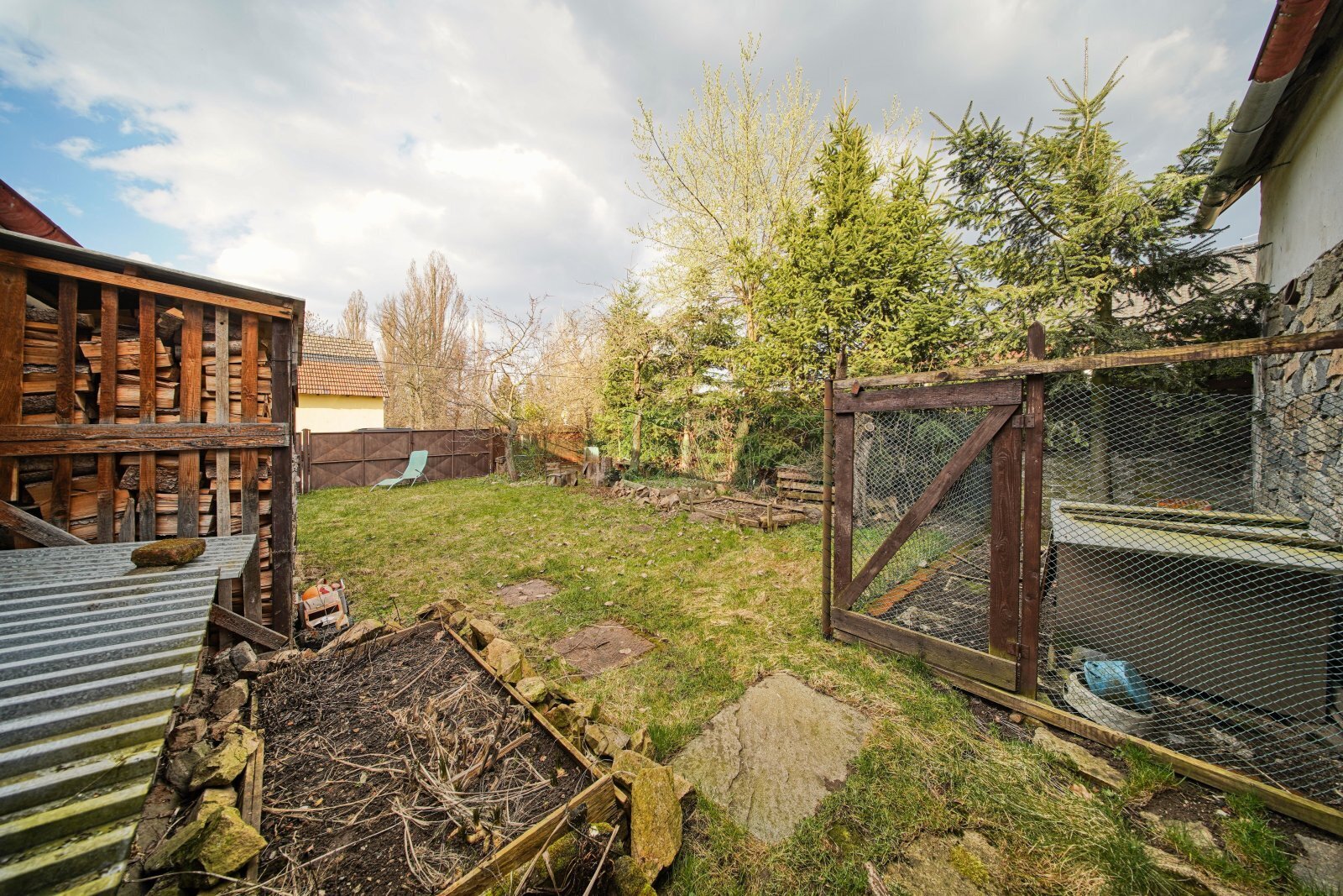 Rovinná a oplocená parcela (306 m2) s několika vzrostlými stromy. Zahrada 130 m2.