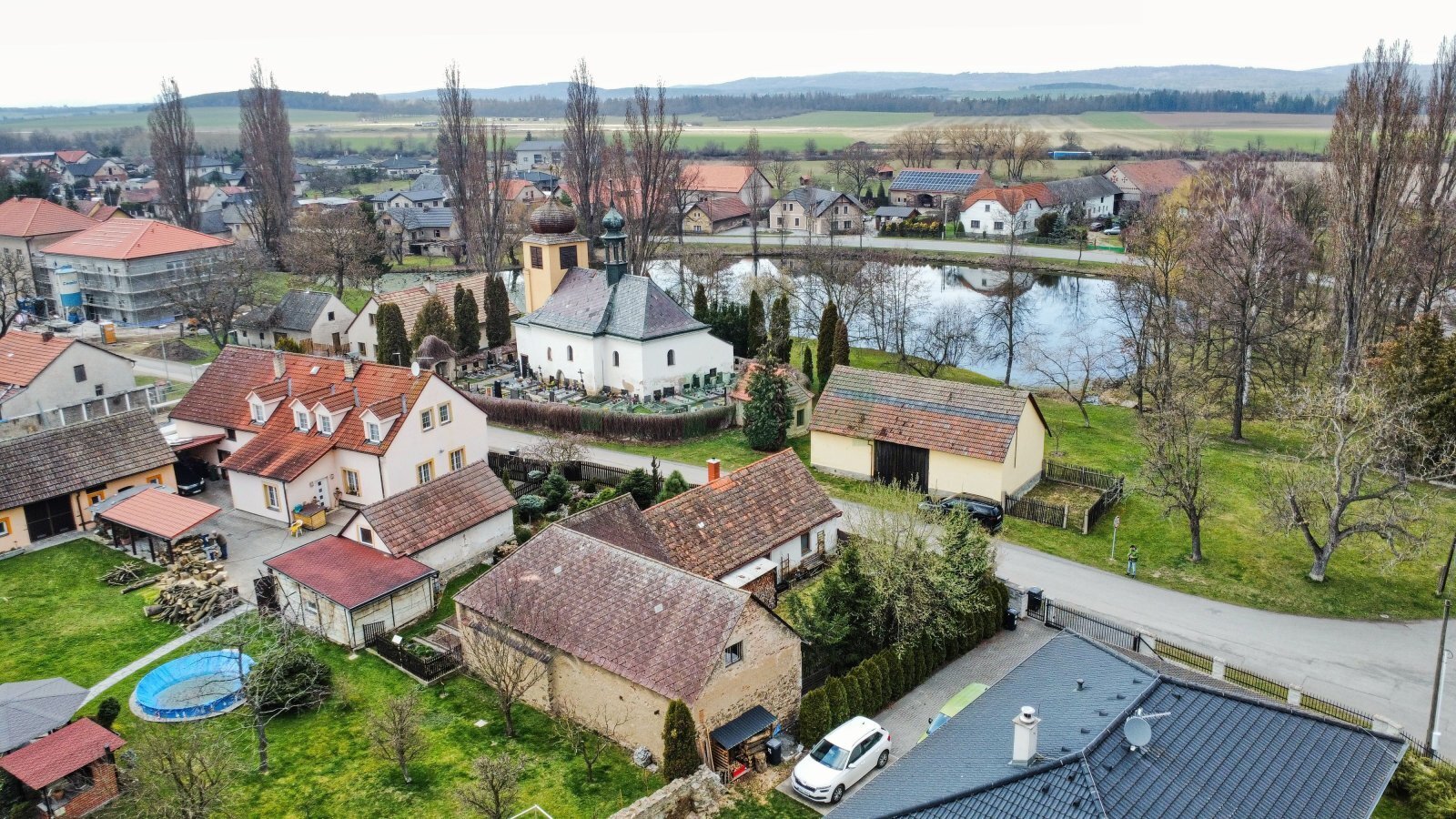 Krásné okolí s množstvím zeleně a rybníků, absolutní klid a soukromí. Autobusová zastávka Dobříš – Příbram 390 m od domu.