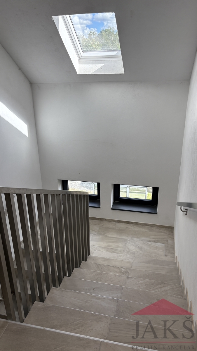 Vysoký standard vybavení: prvotřídní baterie vč. komfortního ovládání, velkoformátové obklady, střešní okna velux, kvalitní vinylové podlahy s motivem dřeva a dýhou;