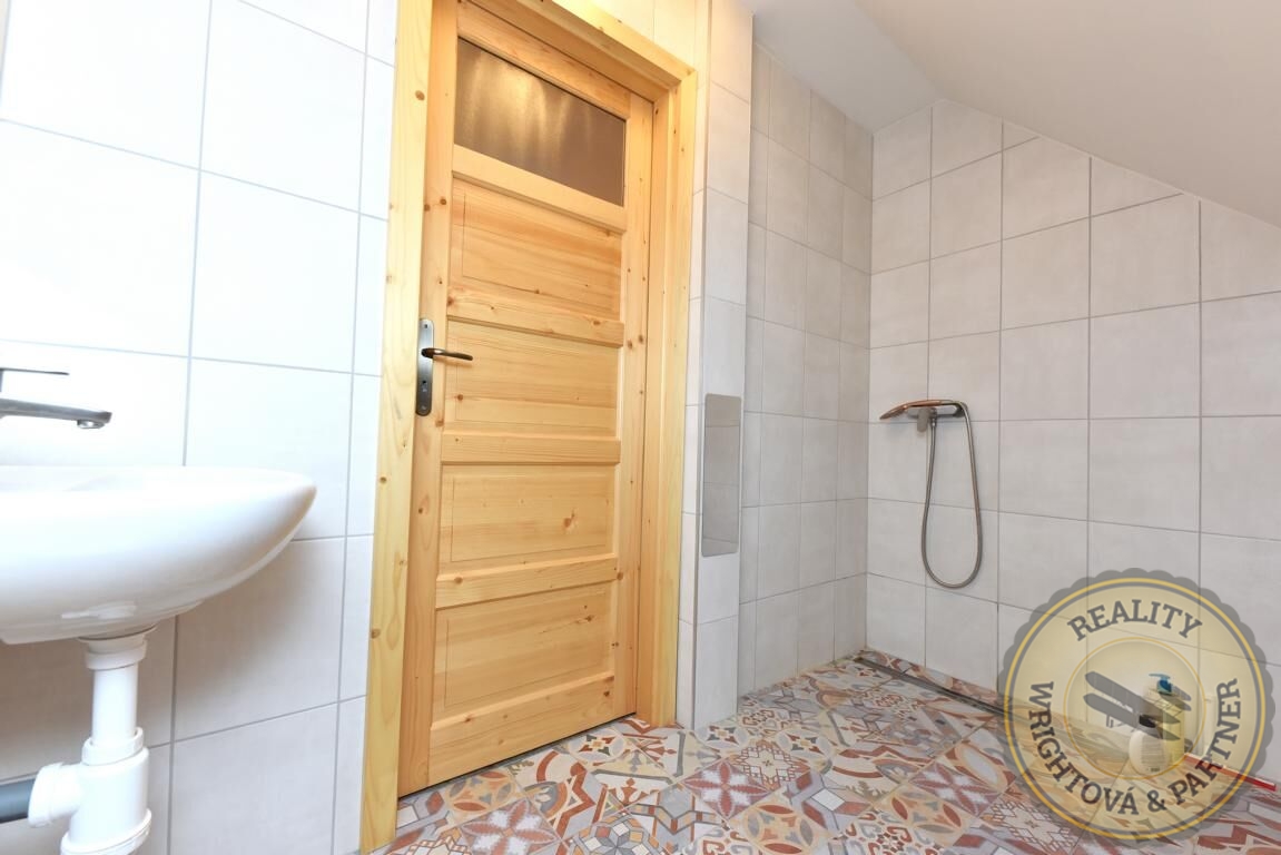 • První patro: Užitná plocha 91,58 m², koupelna s toaletou (sprchový kout), vinylové podlahy, v koupelně dlažba.