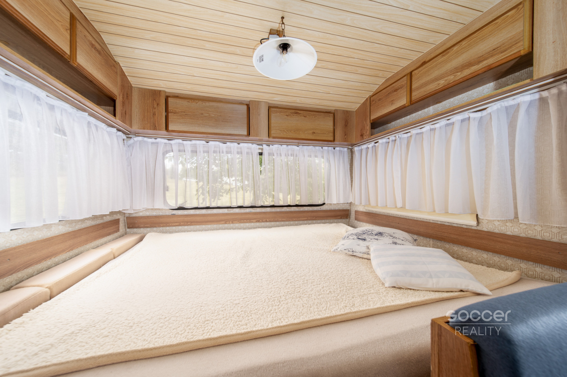 Rekreační karavan zajišťuje útulné zázemí a je vybaven nábytkem. Má sociální zařízení (chemická toaleta a sprcha jsou umístěny v přístřešku), je napojen na pitnou vodu i elektřinu (možnost umístit si např. i průtokový ohřívač vody). K dispozici je také plynový gril. Pro údržbu je zajištěn zahradní traktůrek a základní náčiní. Zahrada je kompletně oplocená (pod uzamčením) a parkovat je možné na oploceném pozemku.