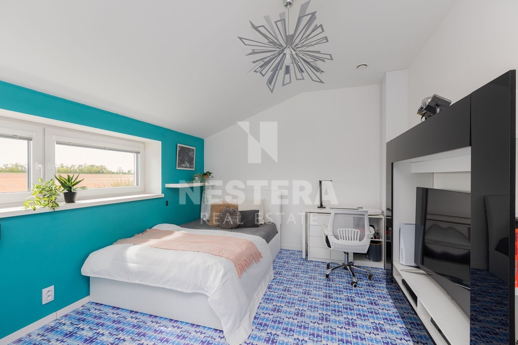 Dům je dvojpodlažní a disponuje užitnou plochou celkem 151 m2. V původním kompletně zrekonstruovaném prvním nadzemním podlaží najdete prostorný obývací pokoj, prakticky oddělenou kuchyň s jídelnou, ložnici, dva samostatné pokoje, koupelnu s vanou a WC a samostatnou toaletu. Ve zcela nově přistavěném patře (2019) se nachází další dva samostatné pokoje, šatna, koupelna se sprchovým koutem a WC a nakonec i prostorná půda. Obě koupelny v domě jsou vybaveny podlahovým topením.