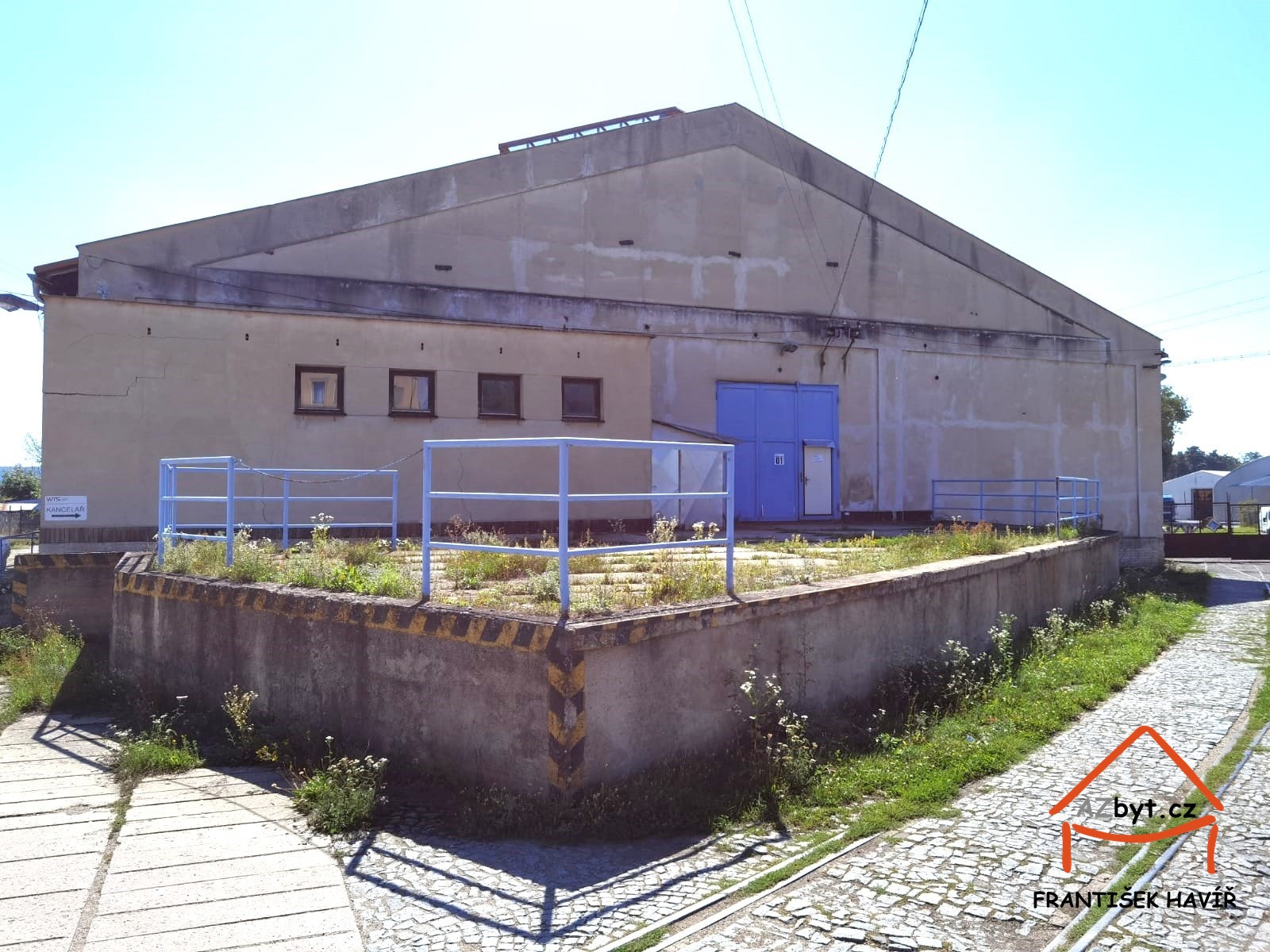 Kolem haly zpevněné plochy.