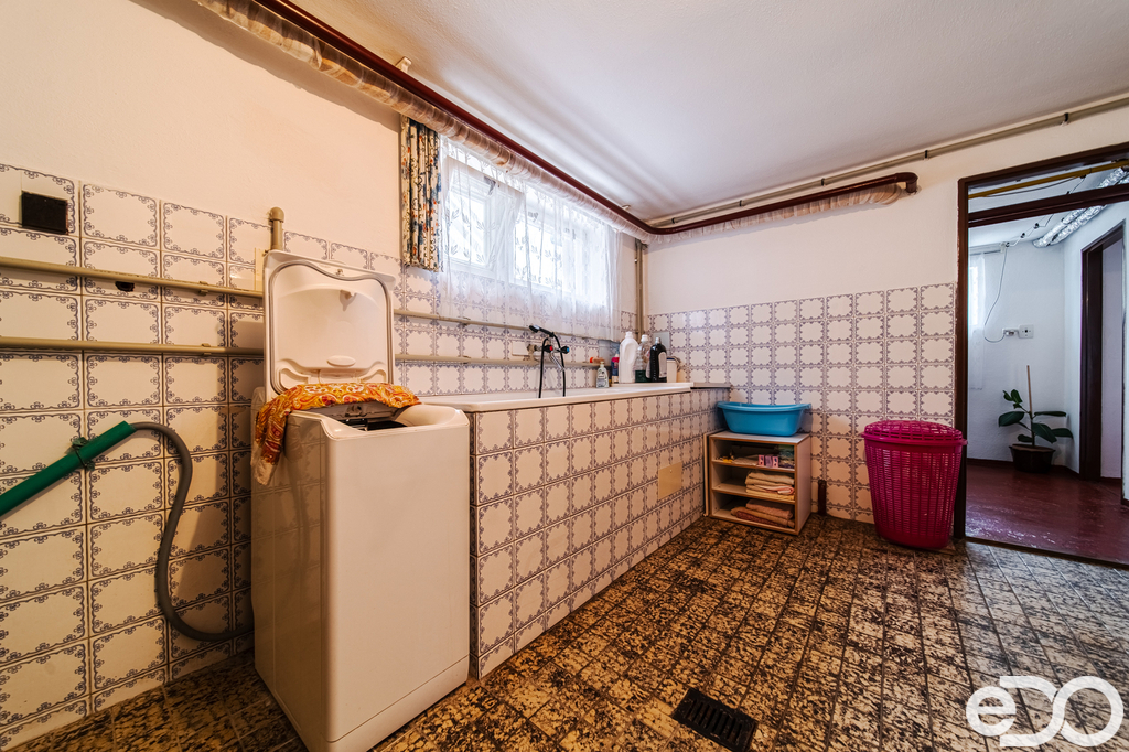 Suterén (97 m²): tři sklepy, komora, sušárna, prádelna, kotelna, kuchyň a obytná místnost – ideální pro provozní zázemí, skladování nebo hobby využití.