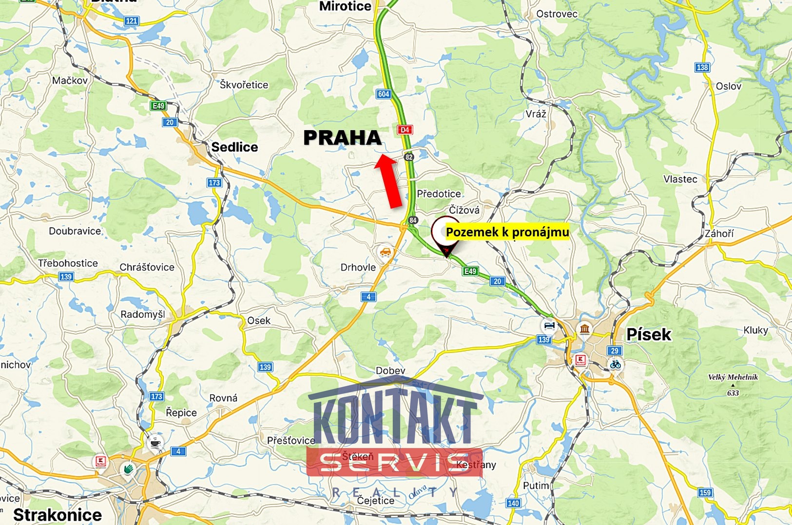 - Přímo u dálnice ve směru Písek – Praha