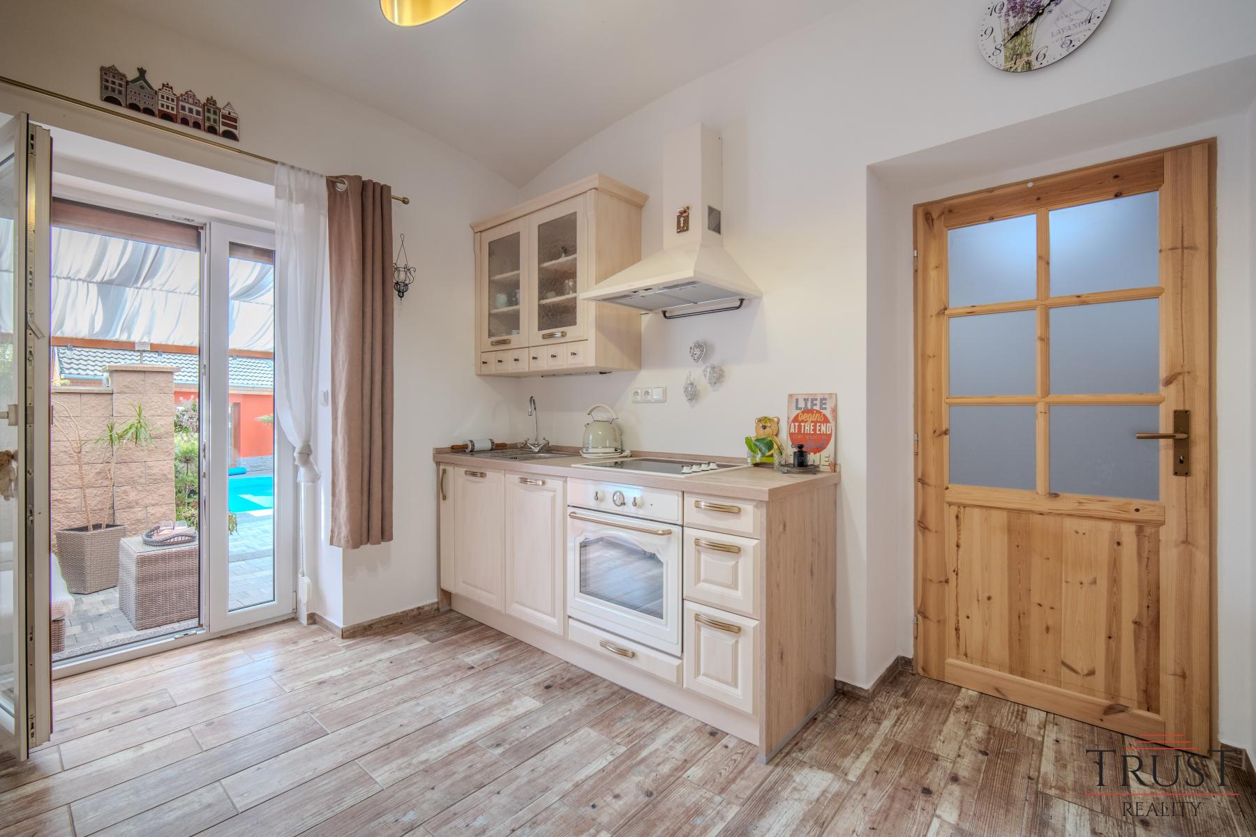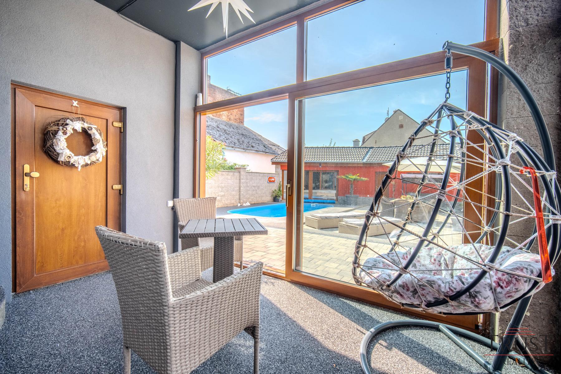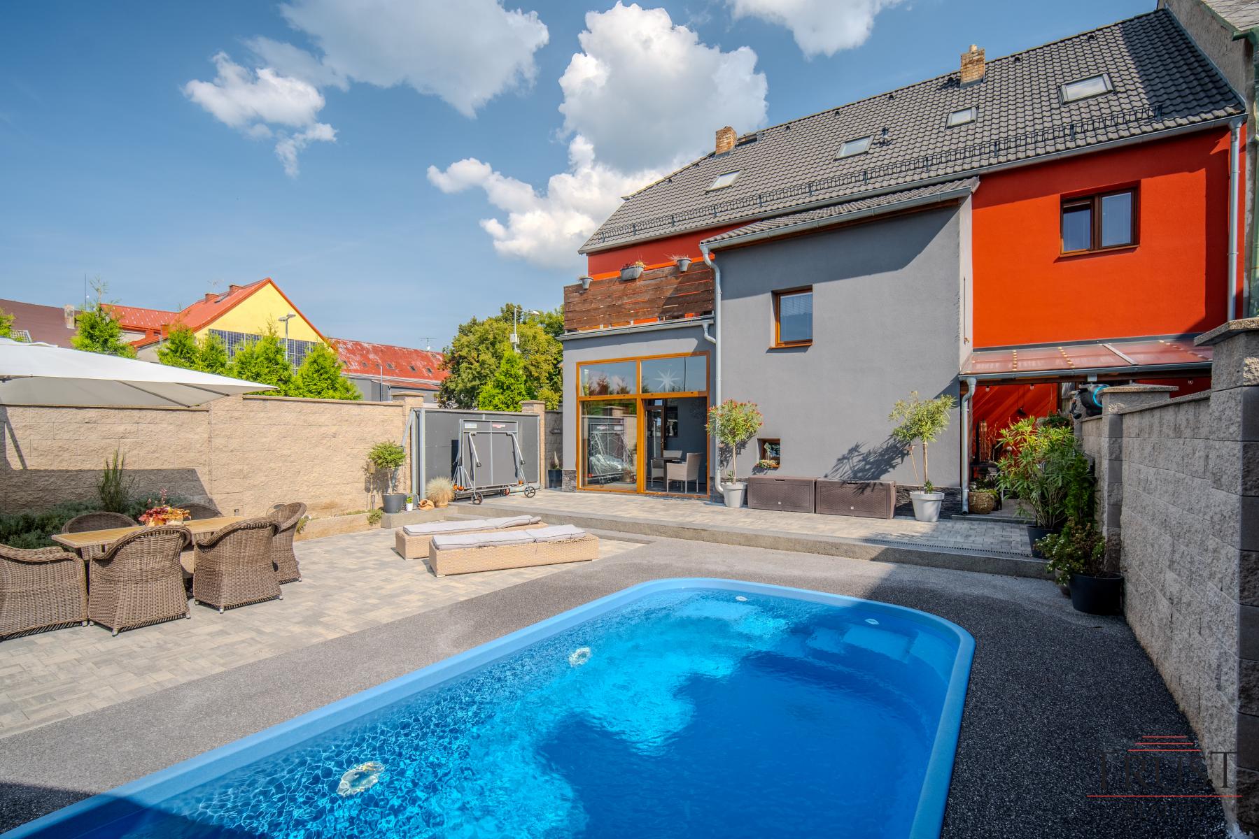 Na pozemku se nachází slaný bazén, který poskytuje ideální místo pro relaxaci. Dva komíny, oba vyvložkované a plně funkční, umožňují variabilitu vytápění a další možnosti. Moderní technologie zahrnují plynový kotel Viessmann (35 kW) a bojler Dražice (200 litrů), který zajistí komfortní vytápění a ohřev vody. Dům je napojen na obecní vodovod i kanalizaci, takže se nemusíte starat o žádné další investice do infrastruktury. Pro větší bezpečnost a pohodlí jsou téměř na všech oknech předokenní rolety. K parkování slouží prostorná garáž s vraty, která lze pohodlně ovládat přes telefon.