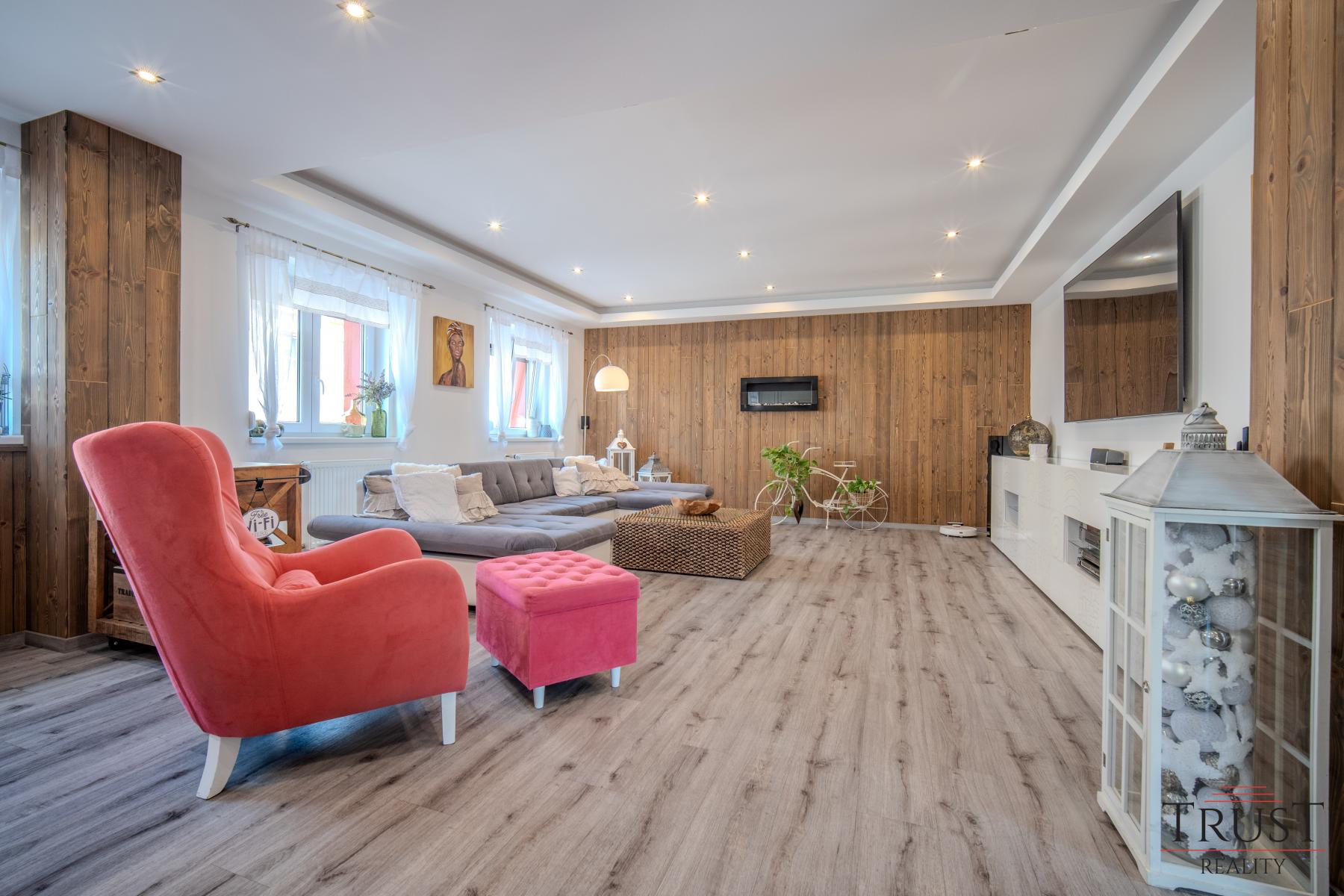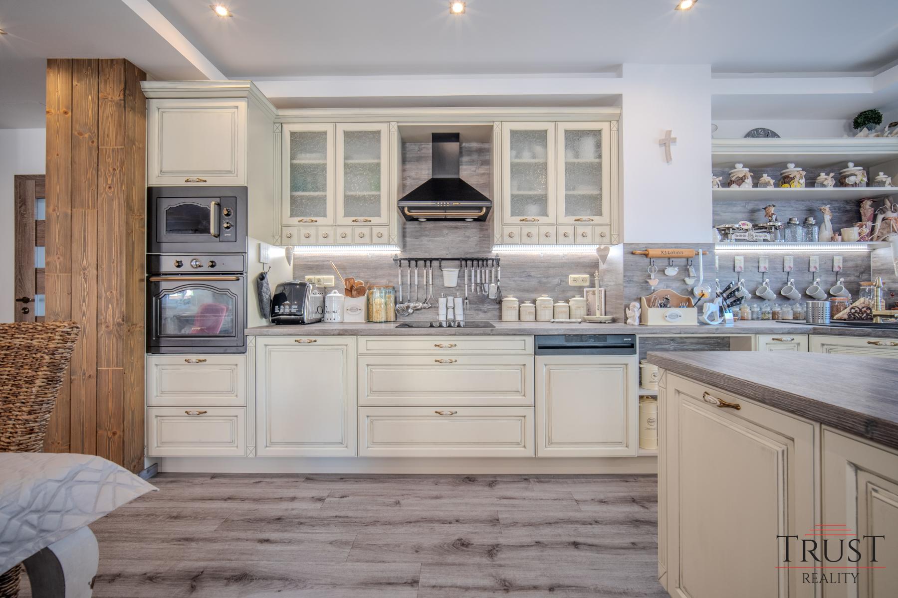 Dům má 6 ložnic a 2 prostorné obývací pokoje, což je ideální pro velké rodiny nebo dvougenerační bydlení. Nechybí zde ani 2 krásné terasy, kde si můžete vychutnat chvíle odpočinku a 2,5 kuchyňské linky vyrobené na míru od truhláře. Dvě koupelny a jedna samostatná toaleta poskytují dostatek pohodlí pro celou rodinu. Dům je vybaven vinylovými podlahami a dlažbou v luxusním provedení, které dodávají interiéru moderní a elegantní vzhled.