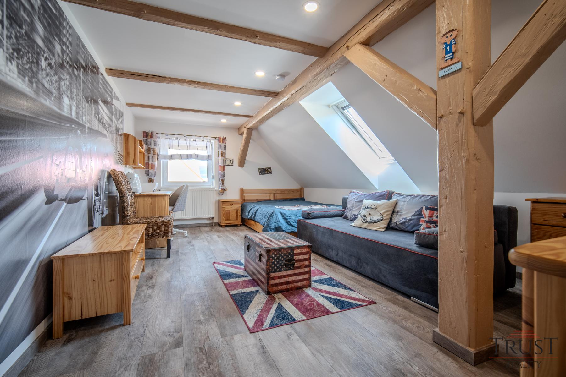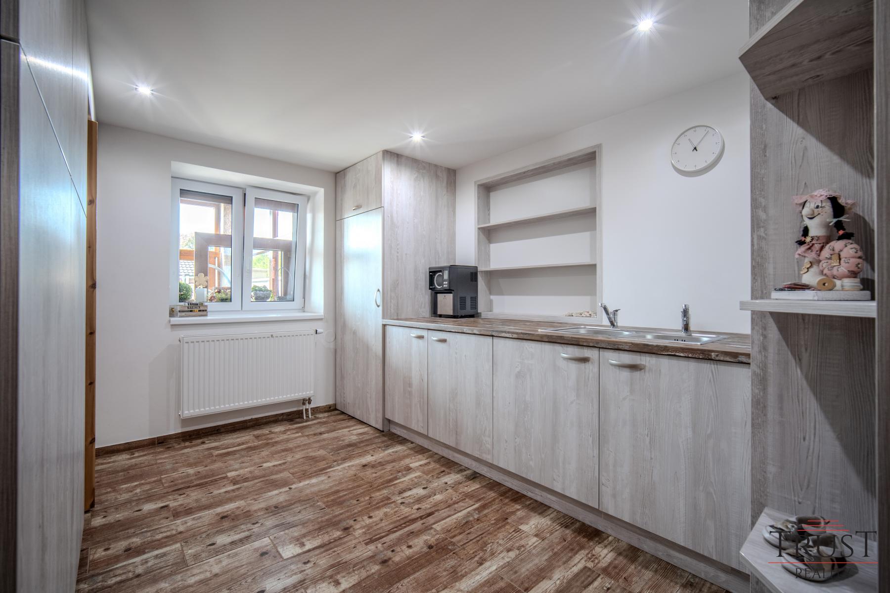 Součástí domu je navíc komerční prostor, který je momentálně využíván jako prodejna. Tento prostor je zkolaudován hygienou pro potravinářský provoz, což nabízí široké možnosti podnikání, například pro rychlé občerstvení nebo jinou formu obchodu. Nechybí zde ani sklep, pochozí zateplená půda a kvalitní betonová střecha s odolnými taškami, což dodává domu dlouhou životnost.