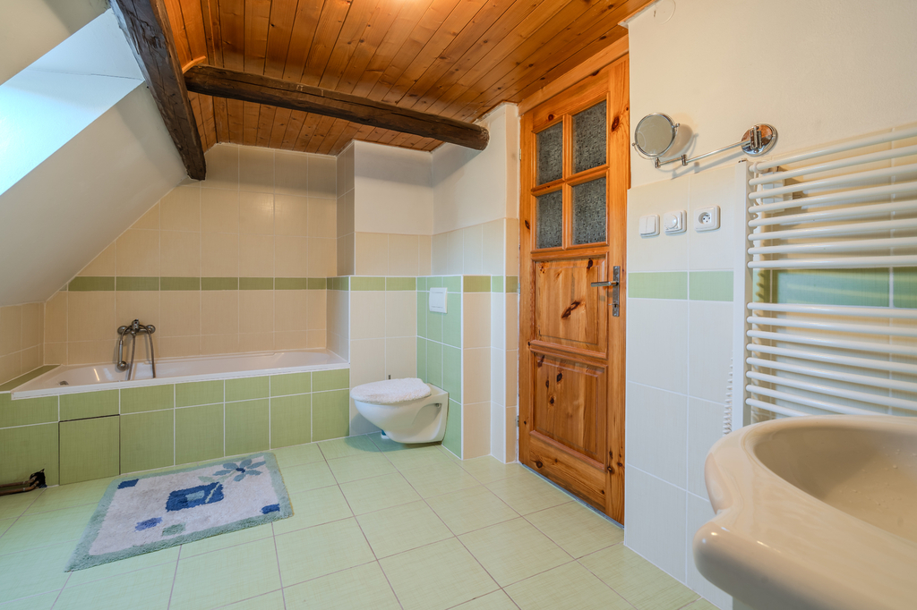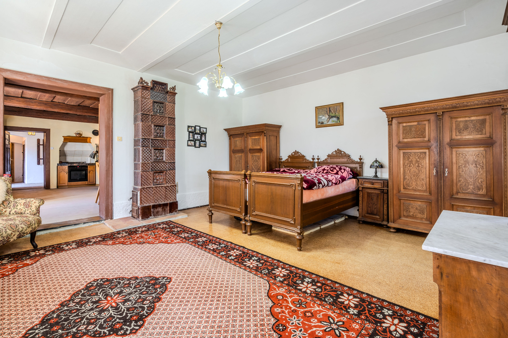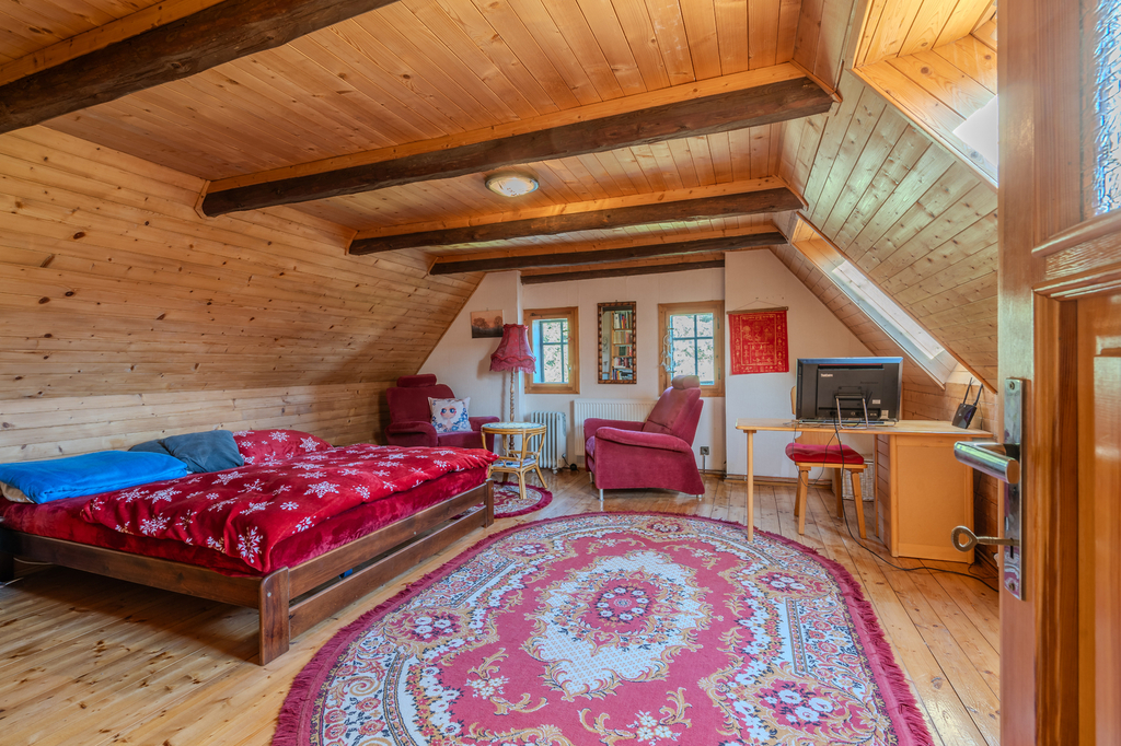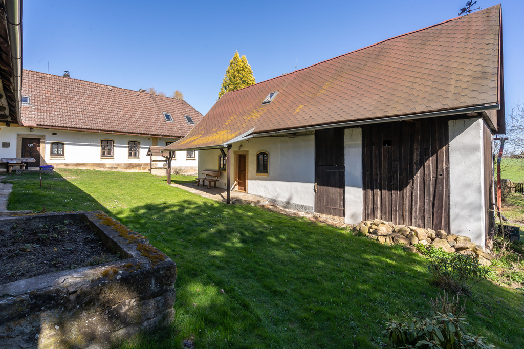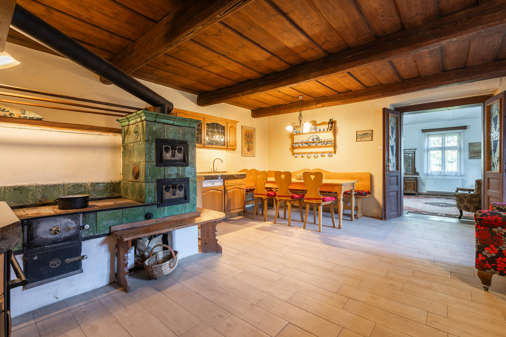 Přízemí rodinného domu je tvořeno prostorným samostatným pokojem, stylovou kuchyní s pecí a stylovou společenskou místností s krbem a s přímým vstupem na částečně krytou terasu. Dále je v přízemí koupelna se saunou, samostatné WC a technické místnosti. V patře domu se nachází 2 samostatné pokoje, koupelna s toaletou a prostorná půda. K domu přiléhá upravená stodola, kterou lze využít ke komerčnímu využití a pořádání společenských akcí. V zadní části domu se nachází terasa s bazénem s nádhernými výhledy do okolí. Vedlejší stavba nabízí apartmánovou jednotku se dvěma samostatnými pokoji, koupelnu s toaletou, samostatným WC, vstupní prostor s kuchyňským a jídelním koutem. K objektu patří také dřevník ve vedlejší stavbě a dílna vedle stodoly. Celkově jsou k dispozici 3 koupelny a 4 toalety.
