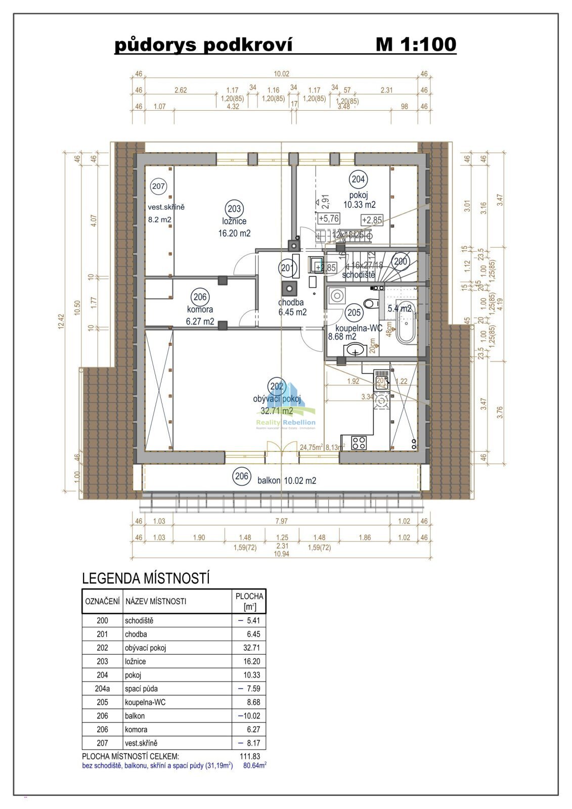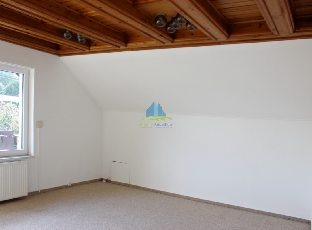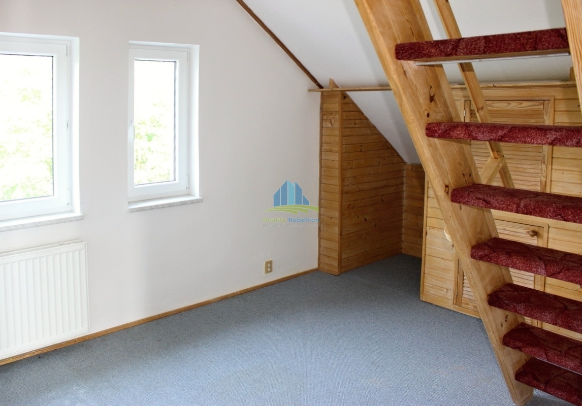 Realitní kancelář REBELLION nabízí k pronájmu byt 3+kk(cca 100m2) v rodinném domě. Bydlení nabízí podkrovní prosluněný obývací pokoj s kuchyňským koutem a velkým balkonem, ložnicí a pokojem se spacím patrem pod střechou. Místnosti jsou odděleny chodbou a doplněny komorou a koupelnou s vanou a WC. Užívání dalších částí domu a zahrady je možné po domluvě s majitelem a nájemníky v přízemí. Před domem je k dispozici parkování na vlastním pozemku. Nájem 16.000,-Kč/měsíc. Vratná kauce 48.000,-Kč. Služby: Voda, elektřina, plyn(topení,TUV), odpady, internet cca 7.000,-Kč/měsíc. Provize RK 12.000,-Kč.