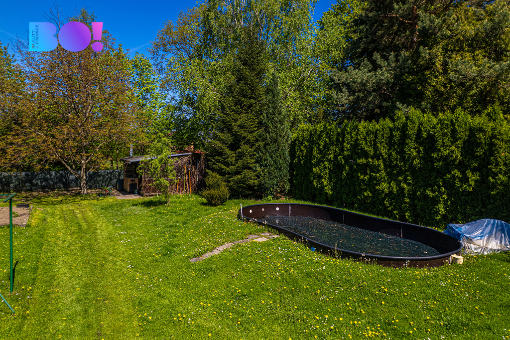 Nicméně spoustu zábavy si užijete i na zahradě domu. Zapuštěný bazén s vyhříváním o velikosti 15 m², nebo párty domek s udírnou a velkým krytým posezením. Na 1480 m² si můžete vymyslet cokoliv.
