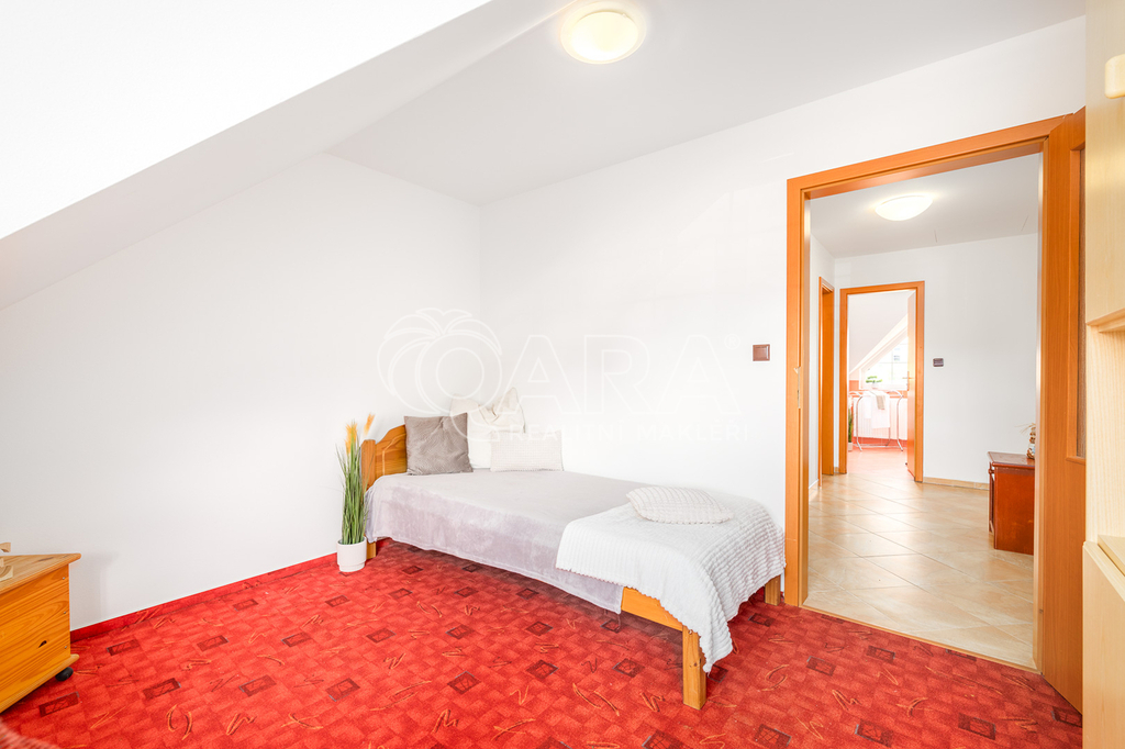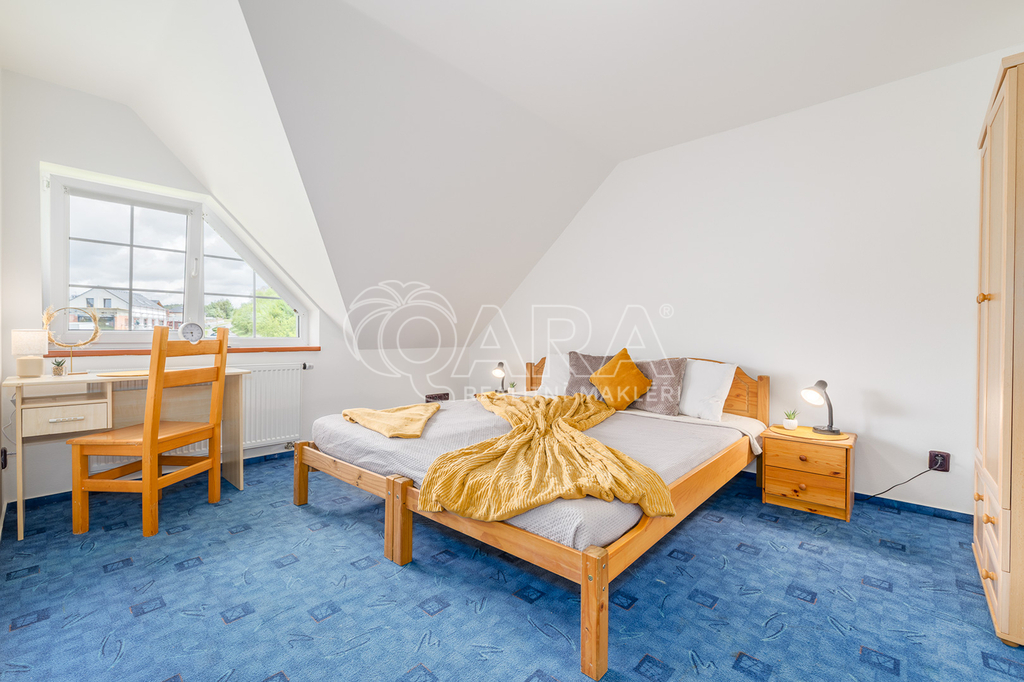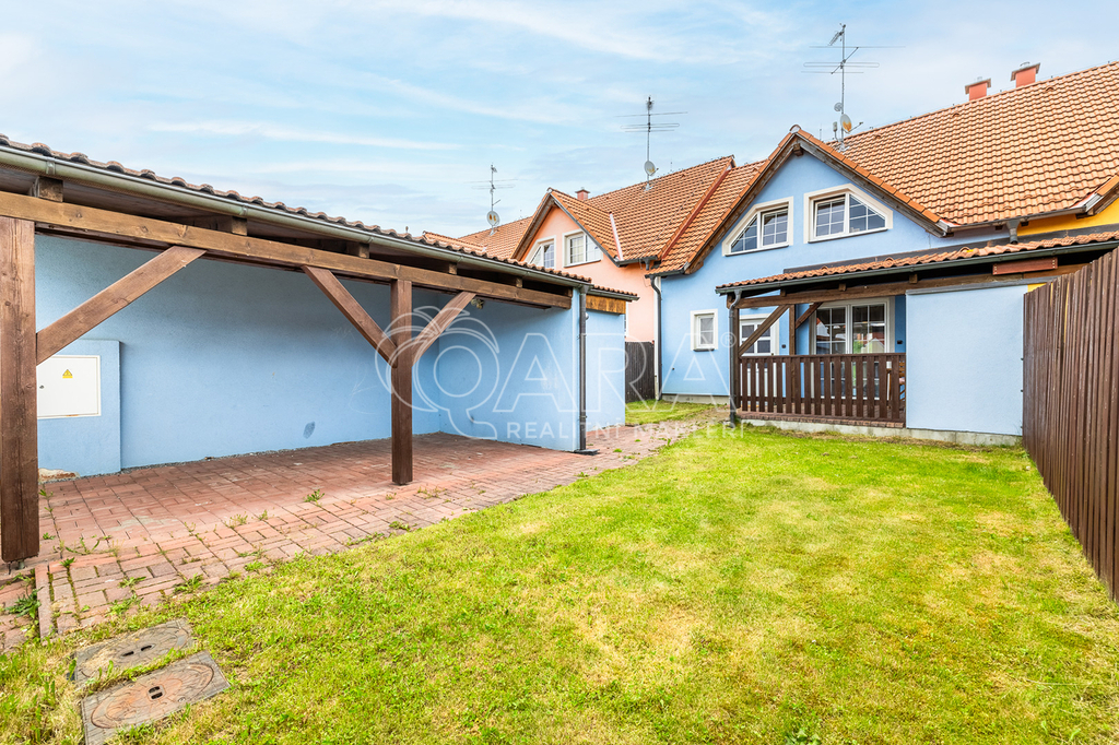 Dům jako takový poskytne užitnou plochu o necelých 120 m2 a je součástí řadového rodinného bloku, poskytne 5 obytných pokojů, dvě koupelny, prostorný obývací pokoj s kuchyní a jídelnou, technické komory a spíž. Vzdušný obývací pokoj vám skvěle doplní přímý vstup na zastřešenou terasu o výměře 14,5 m2, ideální pro posezení a grilování. Naopak na druhé straně domu budete mít z kuchyně vstup na menší zahradu za domem, kde budete mít ideální klidné prostředí na váš relax, na opalování nebo odpočinek třeba na houpačce. Jako poslední k praktičnosti domu napomůže vlastní přístřešek na auta a zahradní domek/skladovací místnost skvělá na uložení vašeho sportovního vybavení a nebo zahradní techniky. Pro další parkování je možné přikoupit ještě jedno vyhrazené parkovací stání před domem.