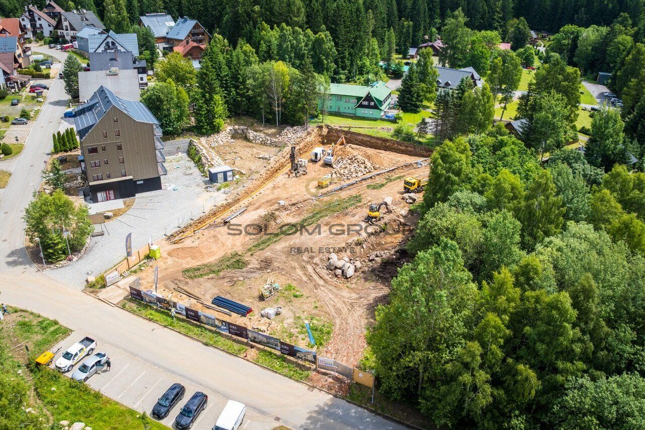 Prodej nového apartmánu 3+kk/, 171,3 m² (byt o výměře 91,44 m² + terasa o výměře 36,70 m² + předzahrádka o výměře 43,16 m²), který se nachází v 1. NP cihlové novostavby v rezidenci ZORA Harrachov, Krkonoše (Dům A)