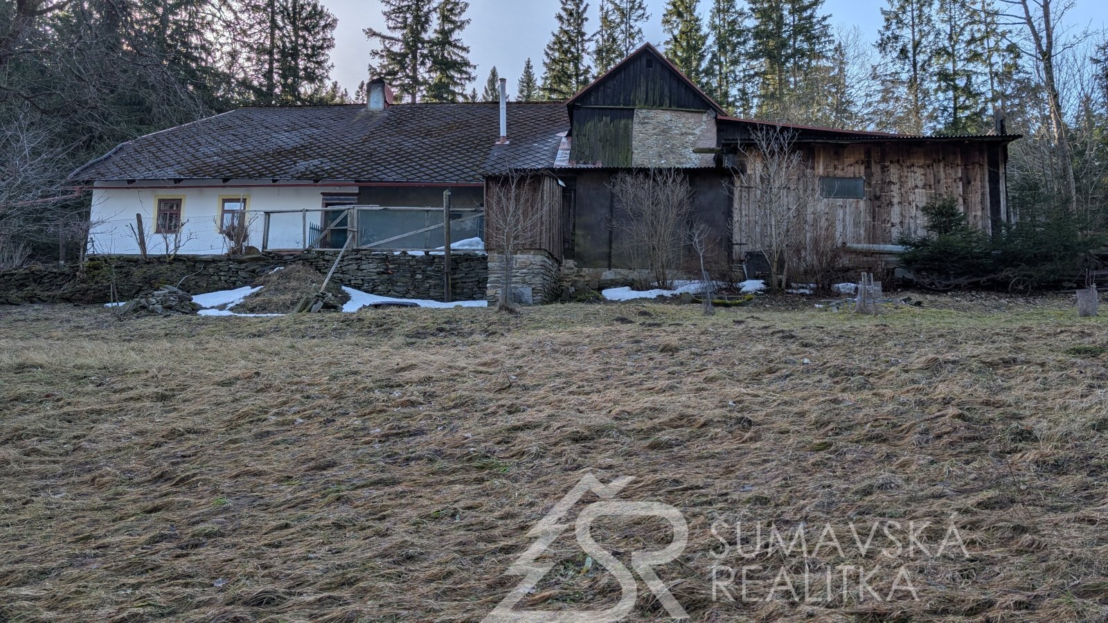 Nabízený dům s navazujícím uceleným pozemkem 3,7 hektaru leží při místní asfaltové komunikaci, která zaručuje bezproblémový příjezd. Od zápraží domu se nabízí úchvatný a nerušený výhled do dalekého údolí. Ještě v mapách je uváděn název této lokality jako „Na hospůdce“, kdy k tomuto účelu dům také sloužil. Předností krásně zachovalé nemovitosti jsou klenby, tloušťka zdiva nebo specifické prvky šumavské architektury. V přízemí domu se nachází vstupní chodba s kamenným dlážděním, velká místnost dříve sloužící jako lokál hospody, další menší místnost a kuchyň s kamny a pecí. Jsou zde i dva sklepy s klenbou. Na obytnou část navazuje hospodářská část se stájí, kolnou a stodolou. Velká dvoupatrová půda pod sedlovou střechou skýtá další velké možnosti.