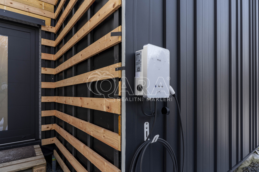 Součástí domu je také instalovaný wallbox pro nabíjení elektromobilu, který podtrhuje připravenost domu na současný i budoucí způsob bydlení.