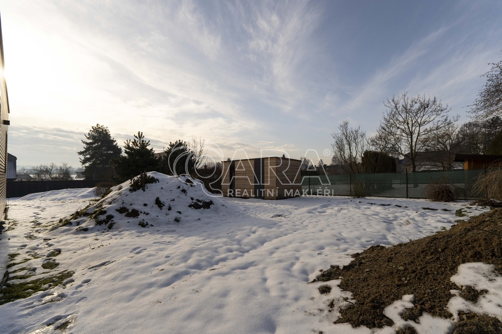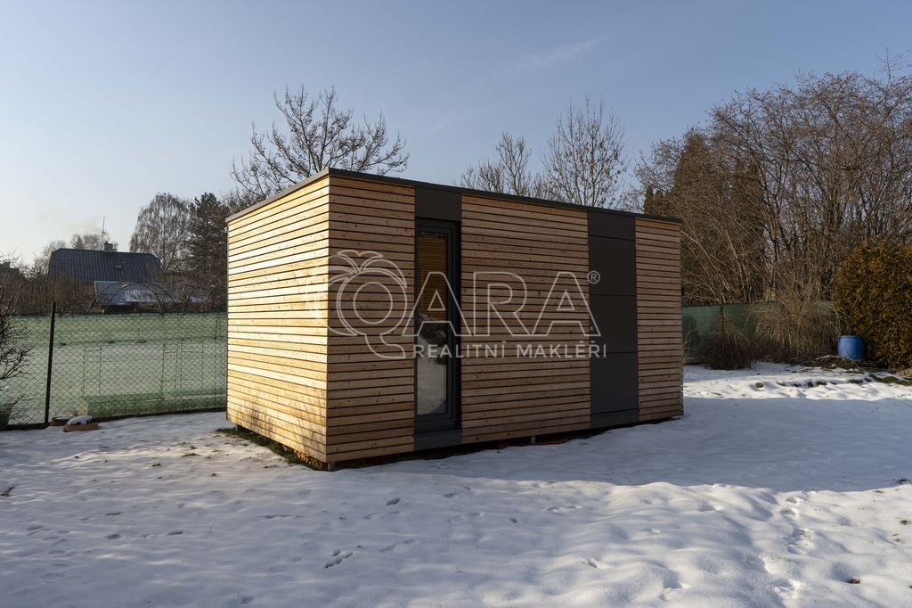 Pozemek je oplocený, s hotovým oplocením a vstupní elektrickou hliníkovou branou, zajišťující soukromí i bezpečí. Součástí zahrady je také samostatný zahradní domek, praktický pro uložení nářadí či sezónních věcí.