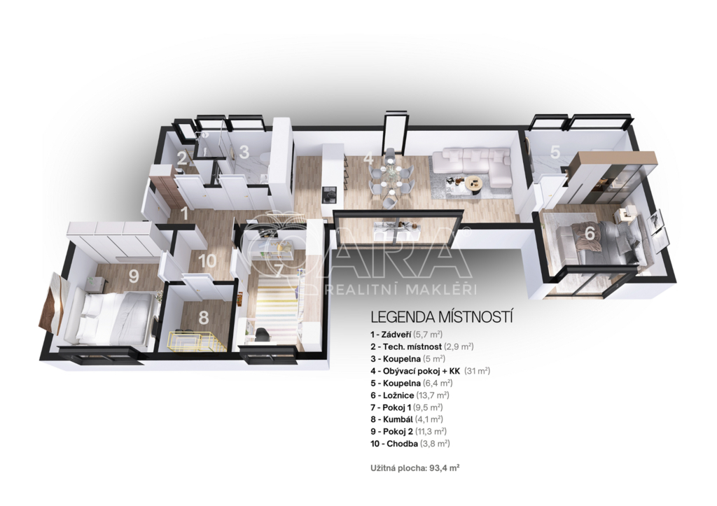 Interiér domu je navržen v moderním a nadčasovém stylu s důrazem na kvalitu a funkčnost. Dům se prodává včetně vybavení, takže umožňuje nastěhování bez nutnosti dalších investic a zajišťuje maximální pohodlí hned od prvního dne.