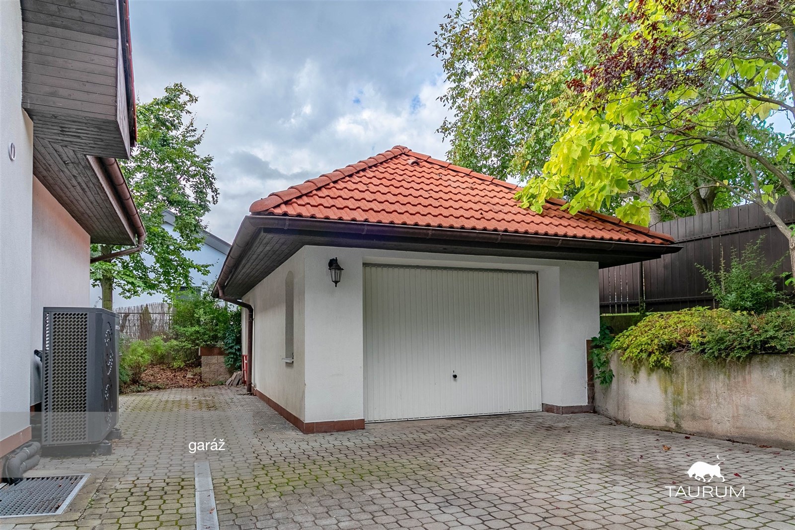 Na pozemku stojí garáž o výměře 23 m² s jedním parkovacím stáním. Další parkovací místa jsou v prostoru před garáží u vchodu do domu. Celková výměra pozemku je 2.001 m², a to včetně vlastní příjezdové cesty. Oplocený pozemek má rozlohu 1.512 m² a je ve velmi hezkém, udržovaném stavu, s množstvím zeleně a kruhovým bazénem.
