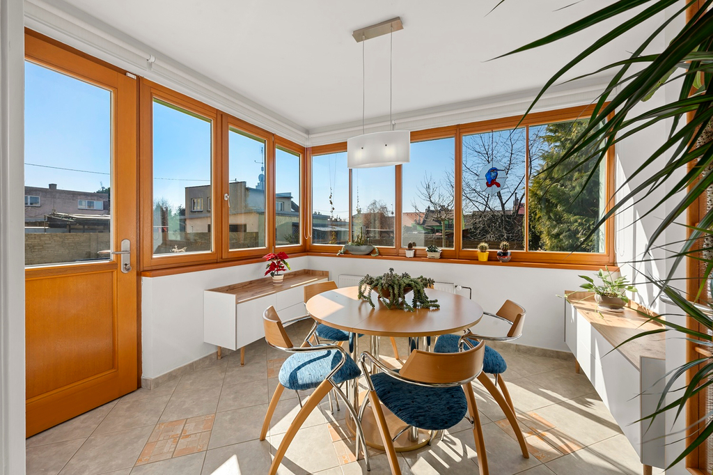 Dispozice domu je ideální pro rodinné bydlení. Výhodou je spousta prostoru se samostatnými vstupy do místností nebo propojení s krásnou zahradou, která nabízí prostor pro relaxaci, zahradničení a trávení volného času s rodinou. Dům je kompletně podsklepený - 4 samostatné místnosti plus kolárna, v 1.NP je prostorný obývací pokoj, kuchyně, zimní zahrada/jídelna a toaleta, ve 2.NP dětský pokoj, ložnice, koupelna a terasa orientovaná do zahrady a ve 3.NP další pokoj a menší pracovna.