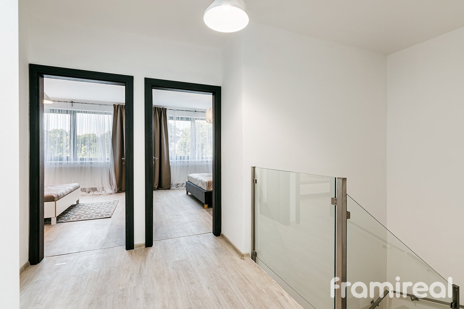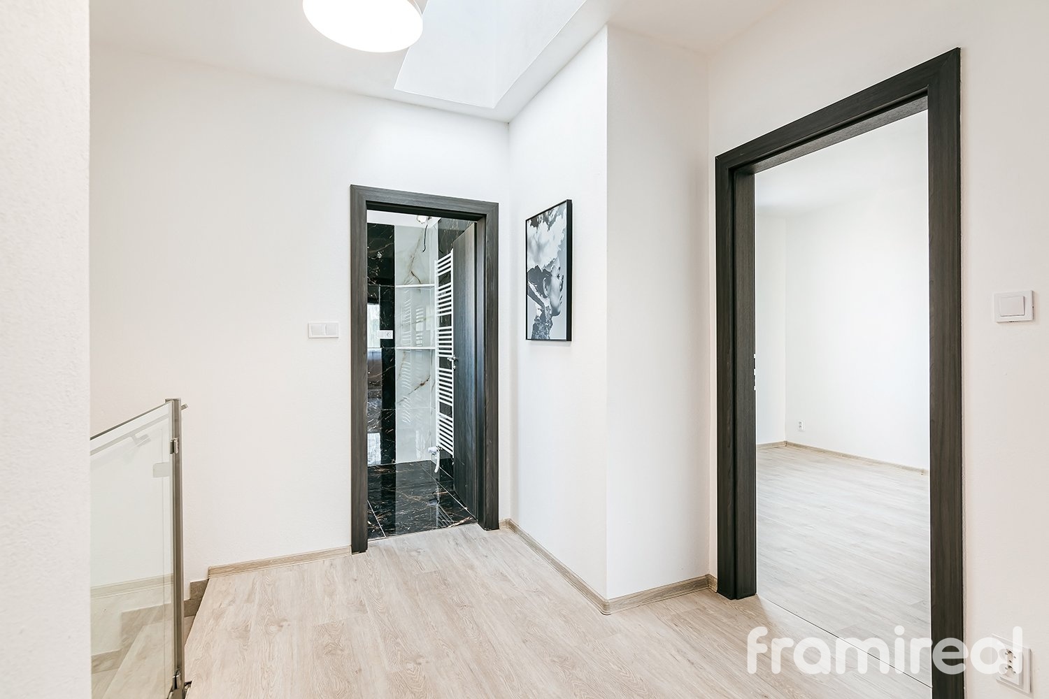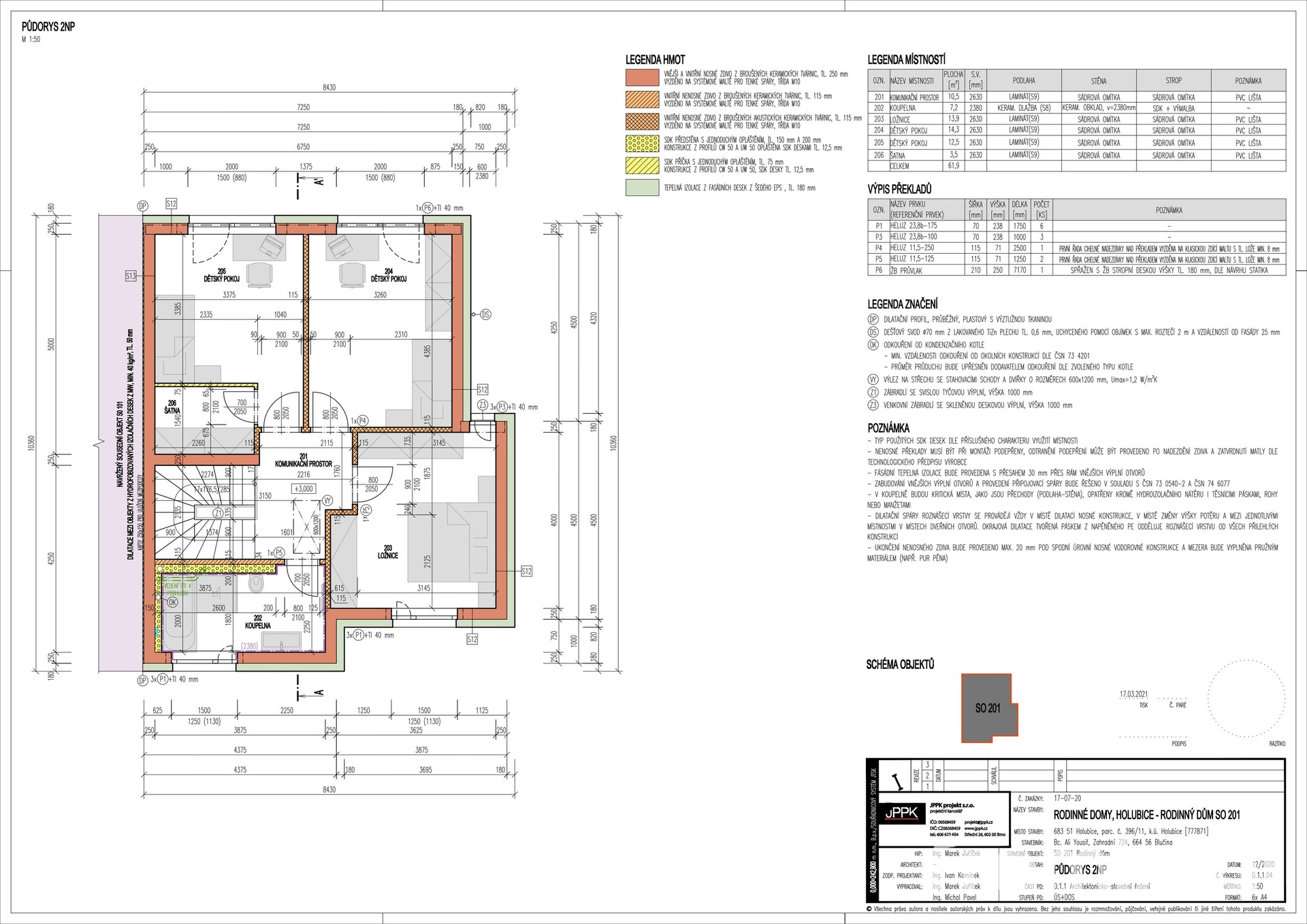 V prvním patře se nachází tři komfortní ložnice, koupelna s vanou a toaletou a také střešní okno na chodbě, které zajišťuje denní světlo i v centrální části horního podlaží.