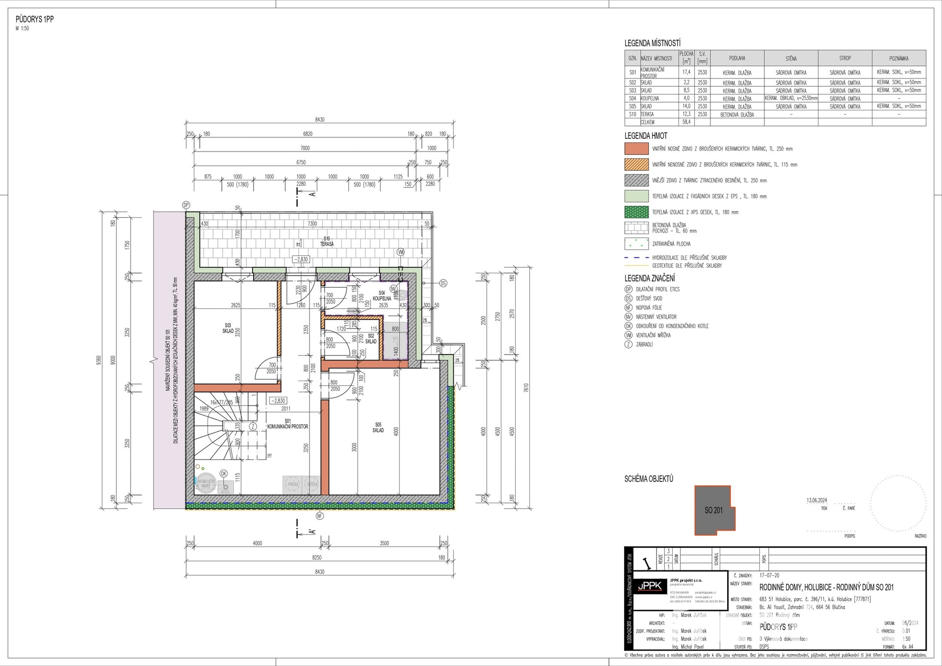 Suterén domu překvapí svou praktičností a variabilitou využití. Nachází se zde technická místnost s plynovým kotlem, moderní systém doplňování retenční nádrže, který v případě nedostatku srážek dokáže využít tzv. šedou vodu z domu, čímž významně šetří vodní zdroje i provozní náklady. K dispozici je také toaleta se sprchou a dvě další plnohodnotné místnosti. Ty lze využít například jako domácí posilovnu, pracovnu, hernu, ateliér nebo klidné zázemí pro podnikání. Možností využití je skutečně mnoho.