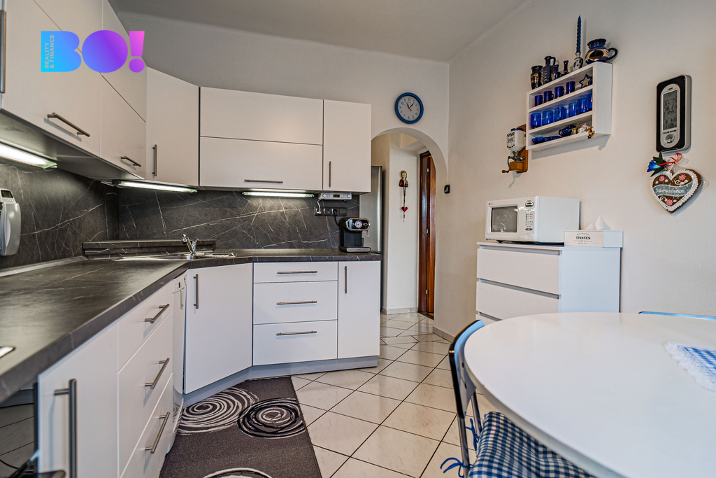 V přízemí se nachází byt 3+1 se zcela novou kuchyní se spižírnou, koupelnou, samostatným WC, obývacím pokojem a dalšími dvěma pokoji.