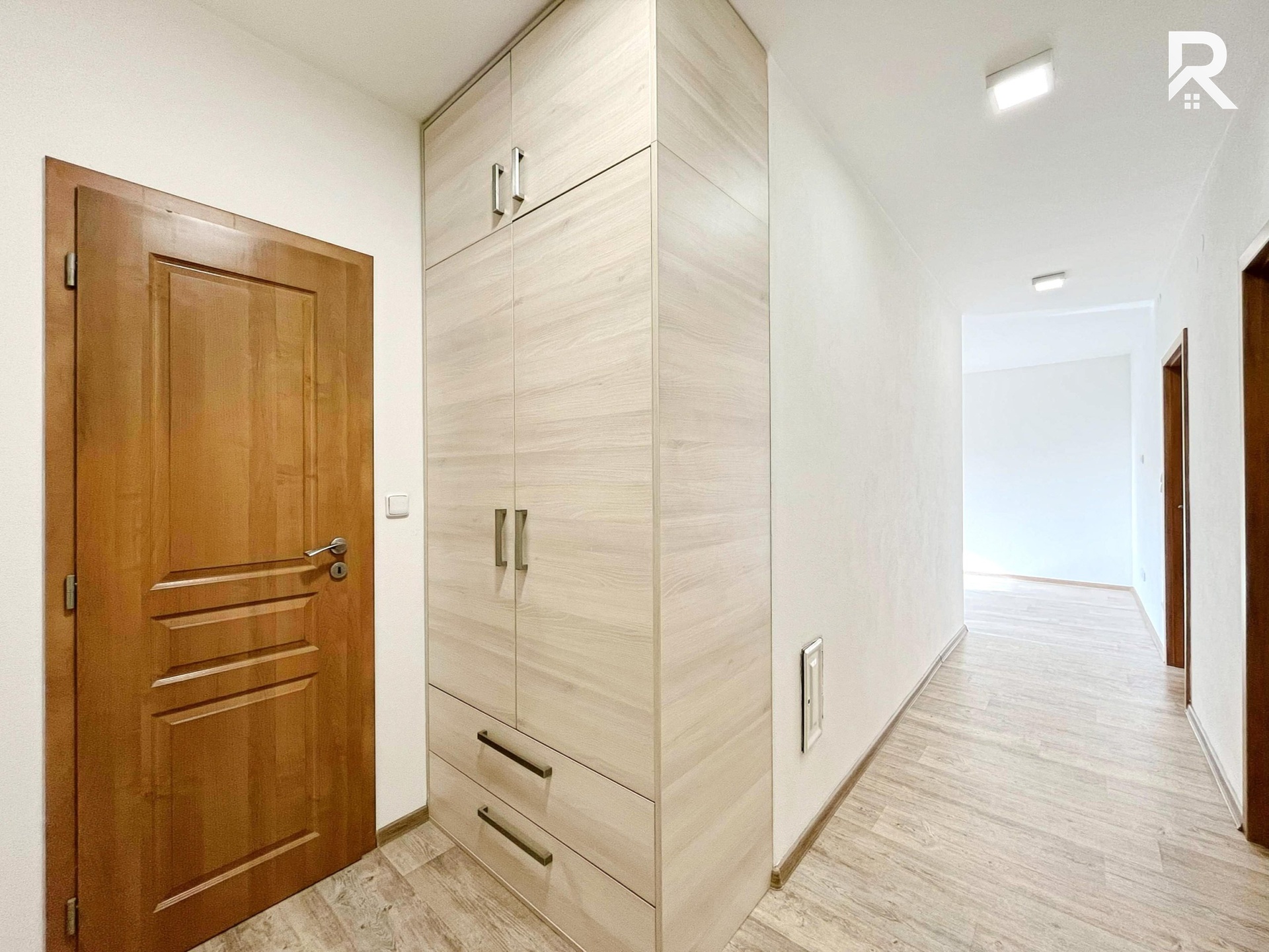 A co samotný byt? Při vstupu vás přivítá prostorná chodba, která elegantně propojuje celý byt. Nabízí spoustu úložného prostoru a hned naproti dveřím vás čeká moderní koupelna s designovým sprchovým koutem a samostatné WC. Z chodby vstoupíte do dvou překvapivě prostorných ložnic s vestavěným prostorem. V bytě také naleznete elektrické předokenní rolety.