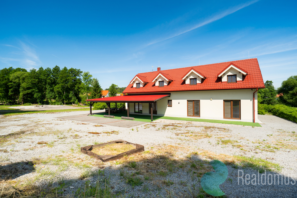 Dům se nachází na rozlehlém a pečlivě udržovaném pozemku (8.031 m2), který nabízí prostor jak pro odpočinek, tak pro budoucí rozvoj. K pohodlí majitelů i hostů přispívá garáž a zastřešená terasa. Součástí pozemku je také hotová základová deska, která je připravena pro výstavbu další nemovitosti a otevírá tak nové možnosti pro rozšíření ubytovacích kapacit nebo jiné podnikatelské či soukromé záměry. K dispozici je také projekt na výstavbu rodinného domu s platným stavebním povolením.