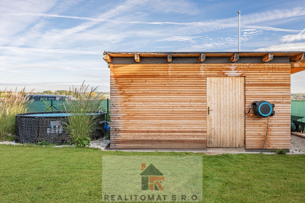 Nabízím exkluzivně moderní nízkoenergetický rodinný dům 4+kk s prostornou terasou, dvě parkovací stání k tomu a zahradní domek v Horoušánkách na Praze - východ.