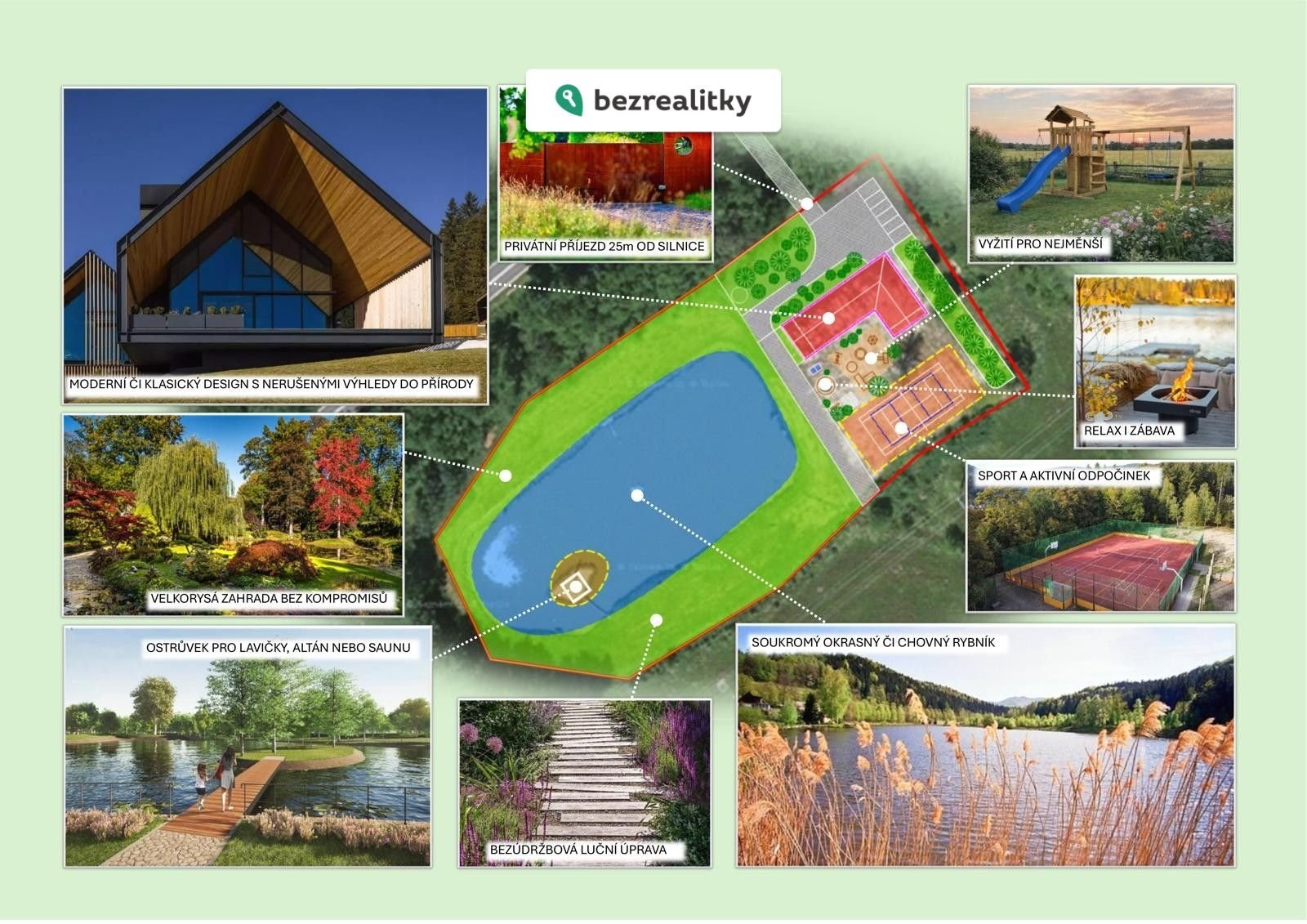 Výjimečný pozemek pro rodinné bydlení nebo komerční ubytování se soukromým rybníkem – Hory u Jenišova