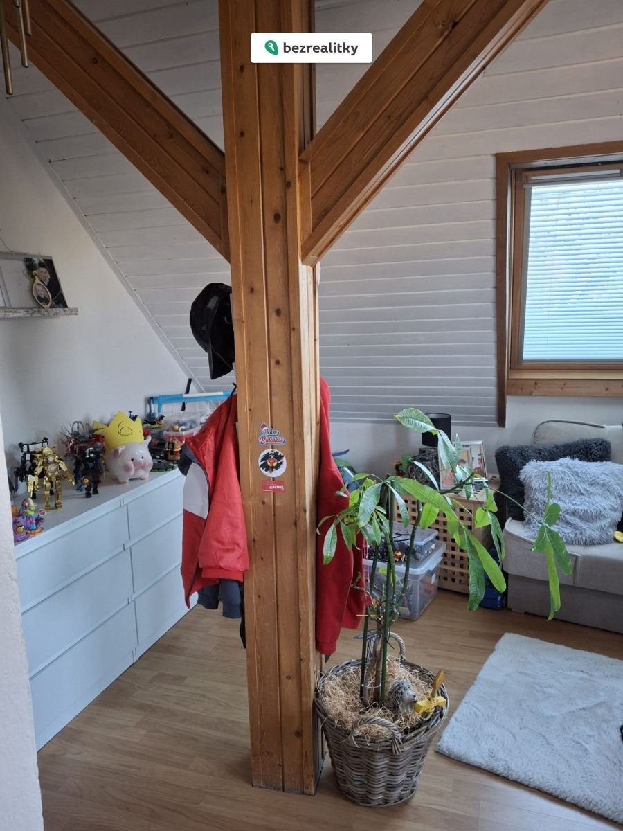 V horním patře najdete další obytnou jednotku 3+kk – dvě ložnice, obytnou kuchyni, koupelnu, komoru a balkon orientovaný do zeleně. Toto patro může sloužit jako samostatná bytová jednotka pro další členy rodiny nebo jako pronajímatelný prostor.
