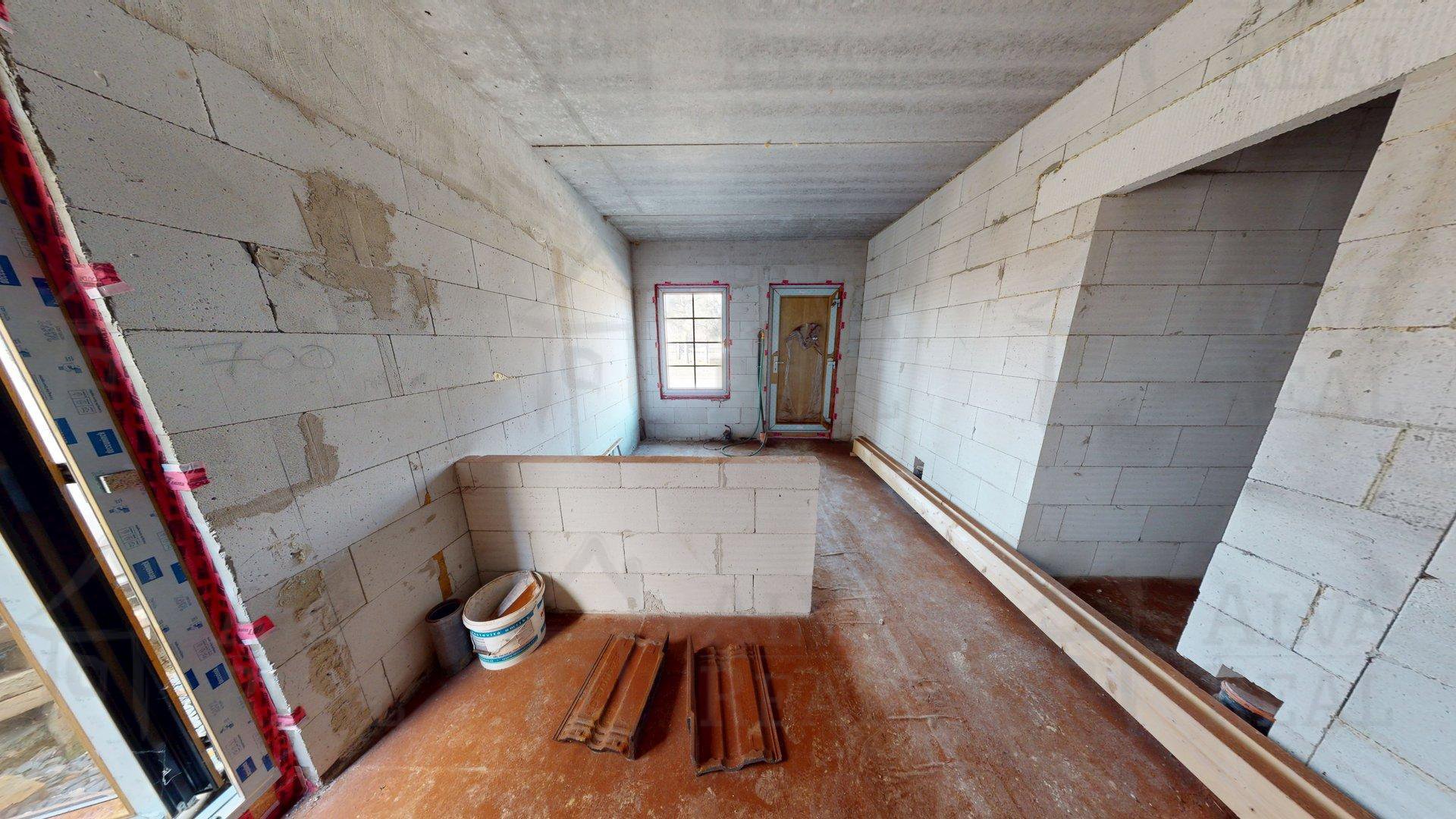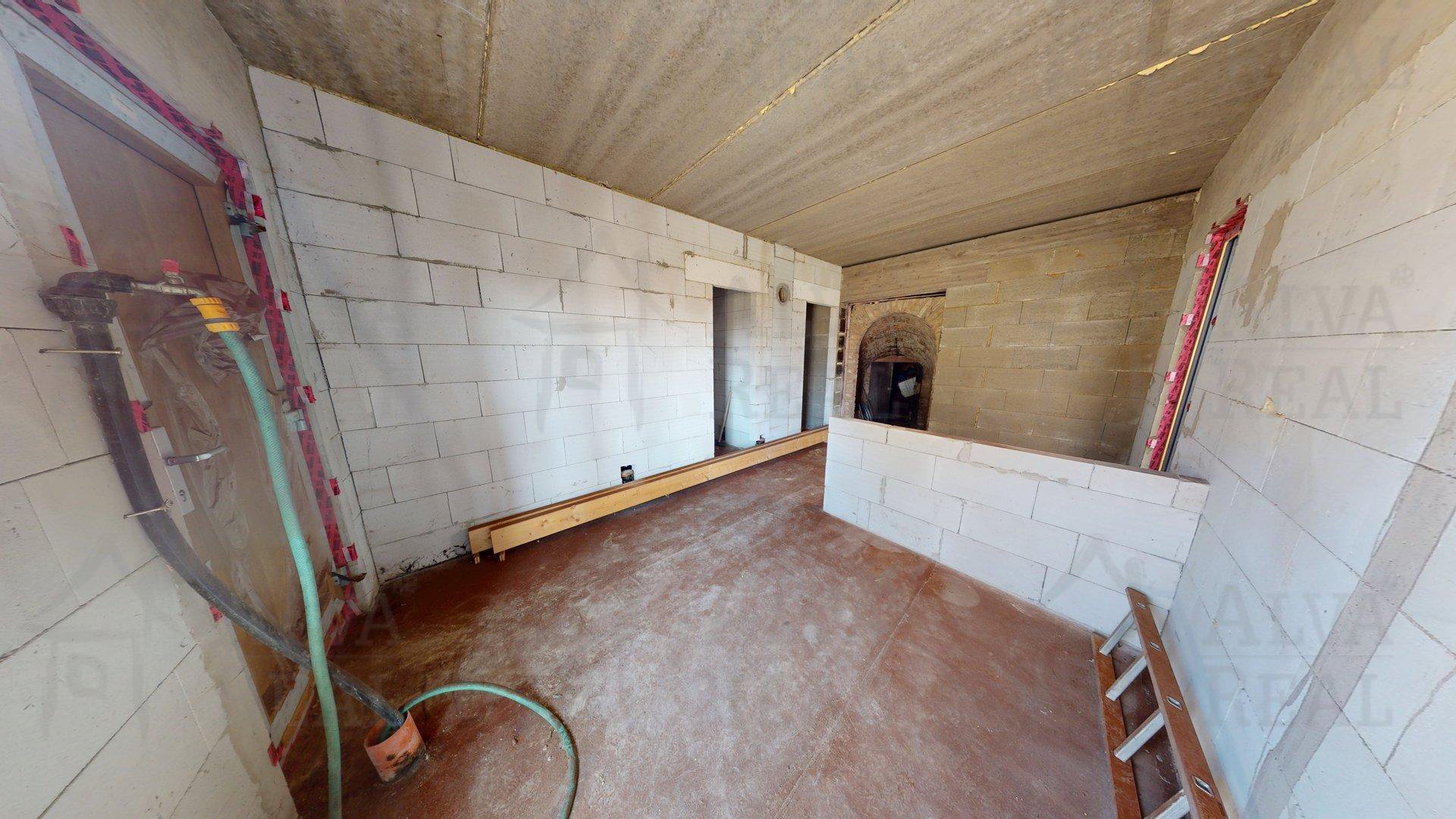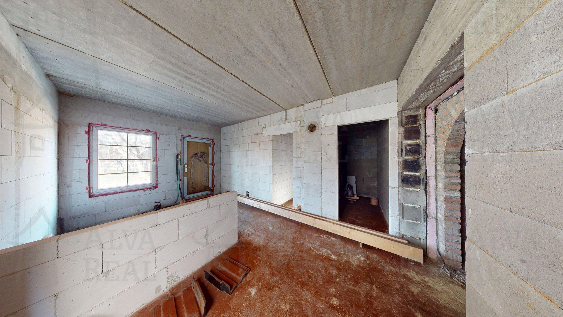Stav stavby: Prakticky se jedná o novostavbu. Původní objekt byl kvůli špatnému stavu demolován a od základů postaven znovu. Aktuálně je dokončena hrubá stavba (obvodové i vnitřní zdivo, zateplená střecha, okna, dveře a komín).