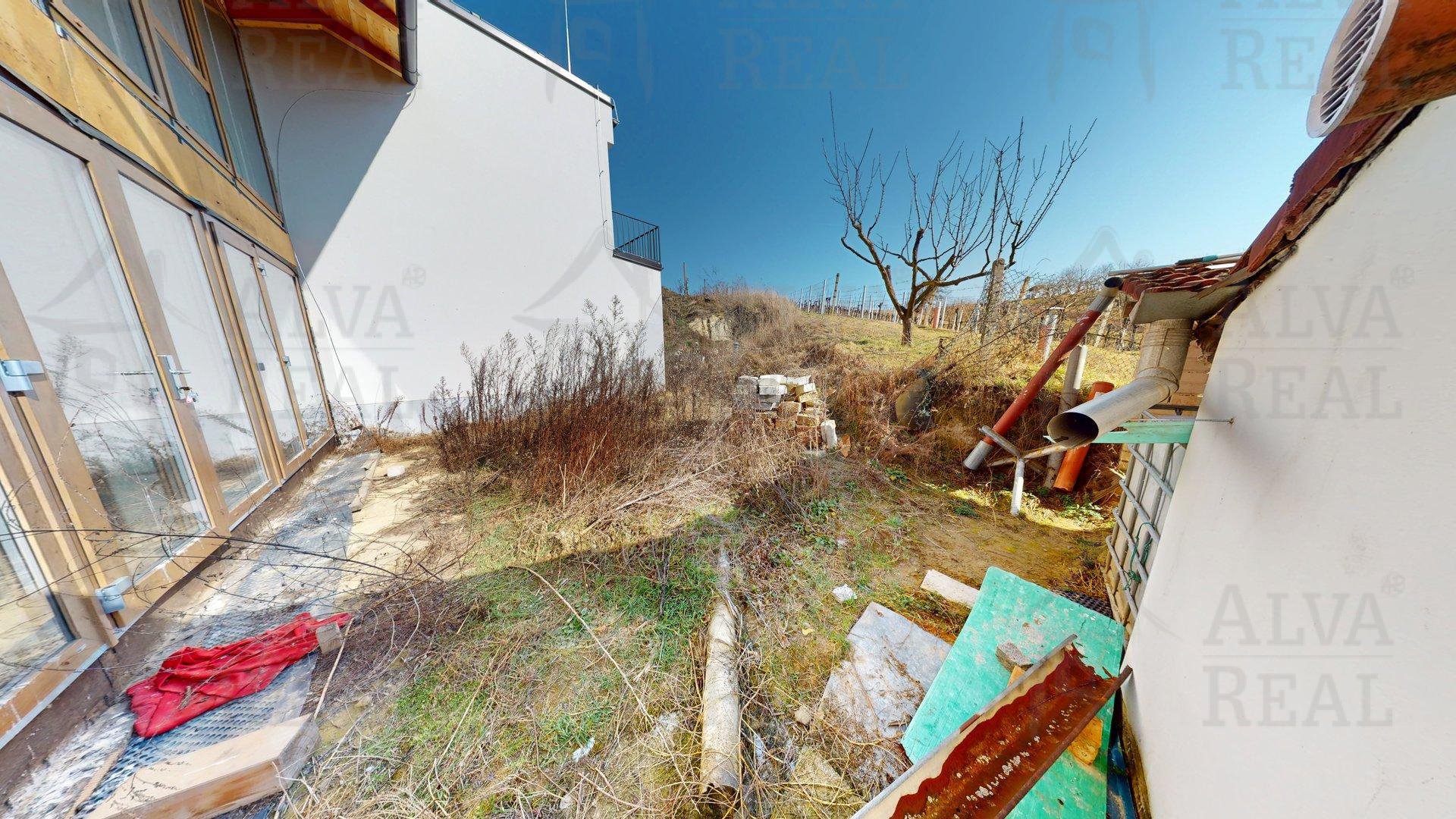 Pozemky: Sklep stojí na pozemku o výměře 86 m². Součástí prodeje jsou navazující pozemky (bývalý vinohrad) o celkové rozloze 756 m², které nabízejí prostor pro terasu, zahradu či jiné využití.