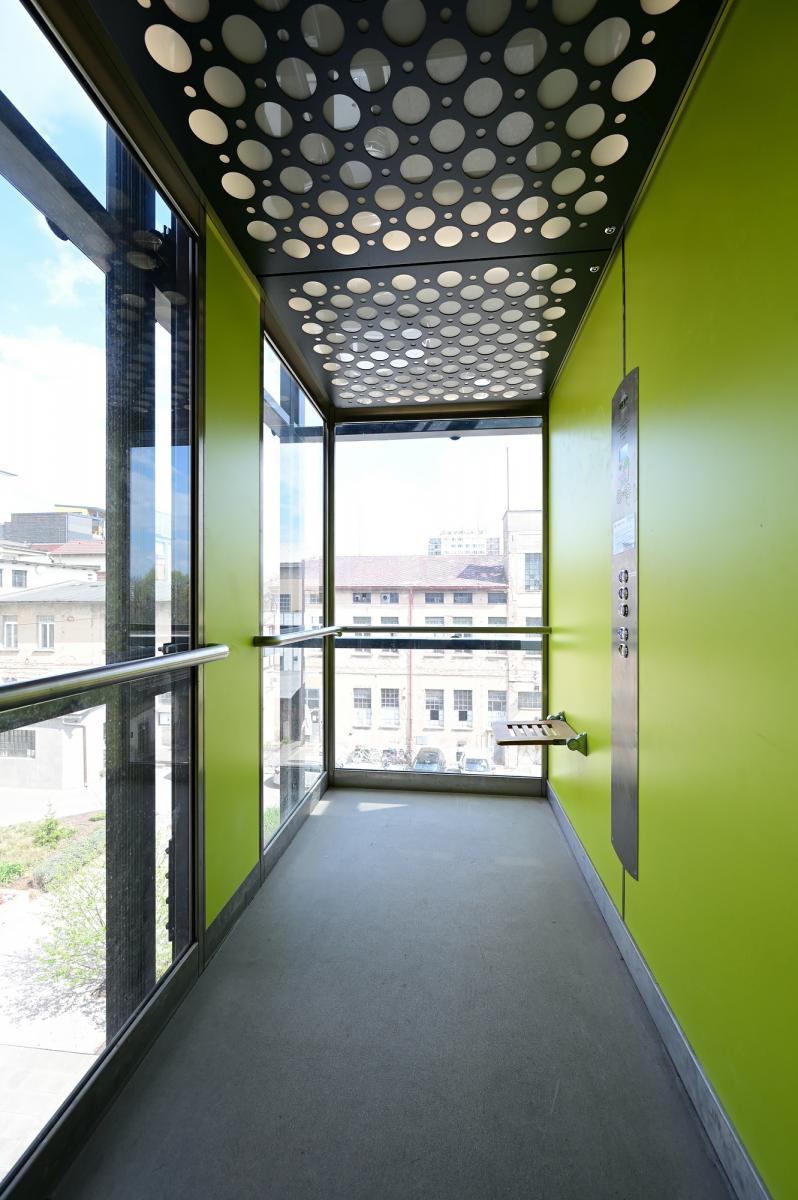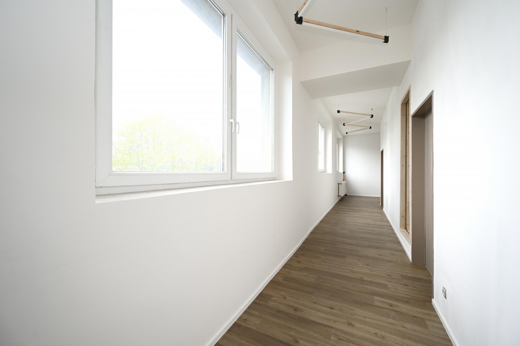 Situovaný ve třetím patře s výtahem, multifunkčního domu Pilnáčkovy továrny, ulice Pospíšilova, v centru Hradce Králové.