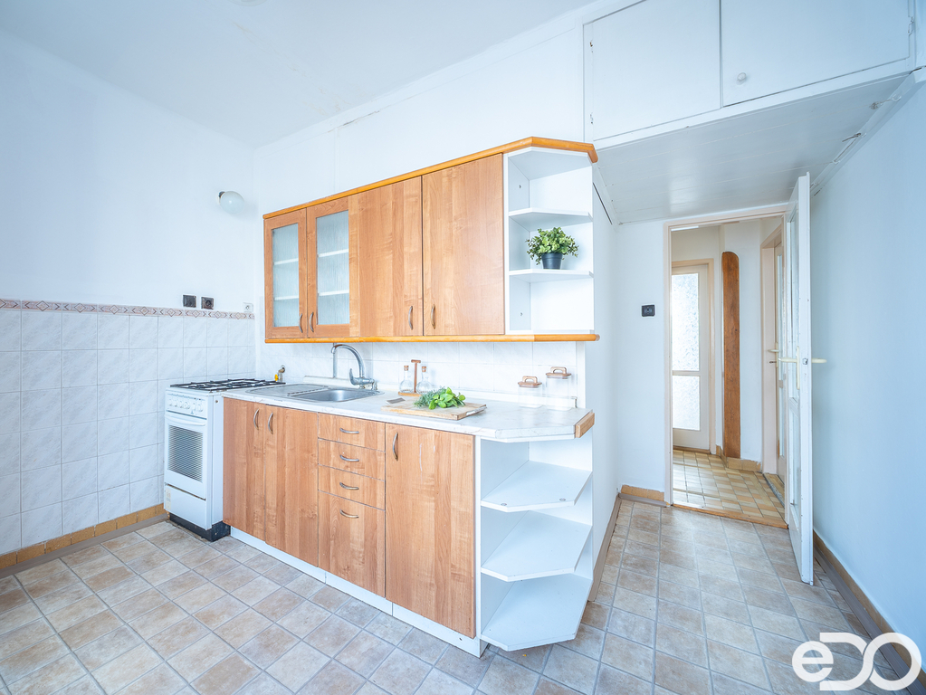 Příjemným prvkem jsou původní dřevěné parkety v obytných místnostech, které dodávají prostoru charakter a lze je citlivě zrenovovat. K bytu náleží sklepní kóje v suterénu domu, která poskytuje praktický prostor pro uložení sezónních věcí nebo sportovního vybavení.
