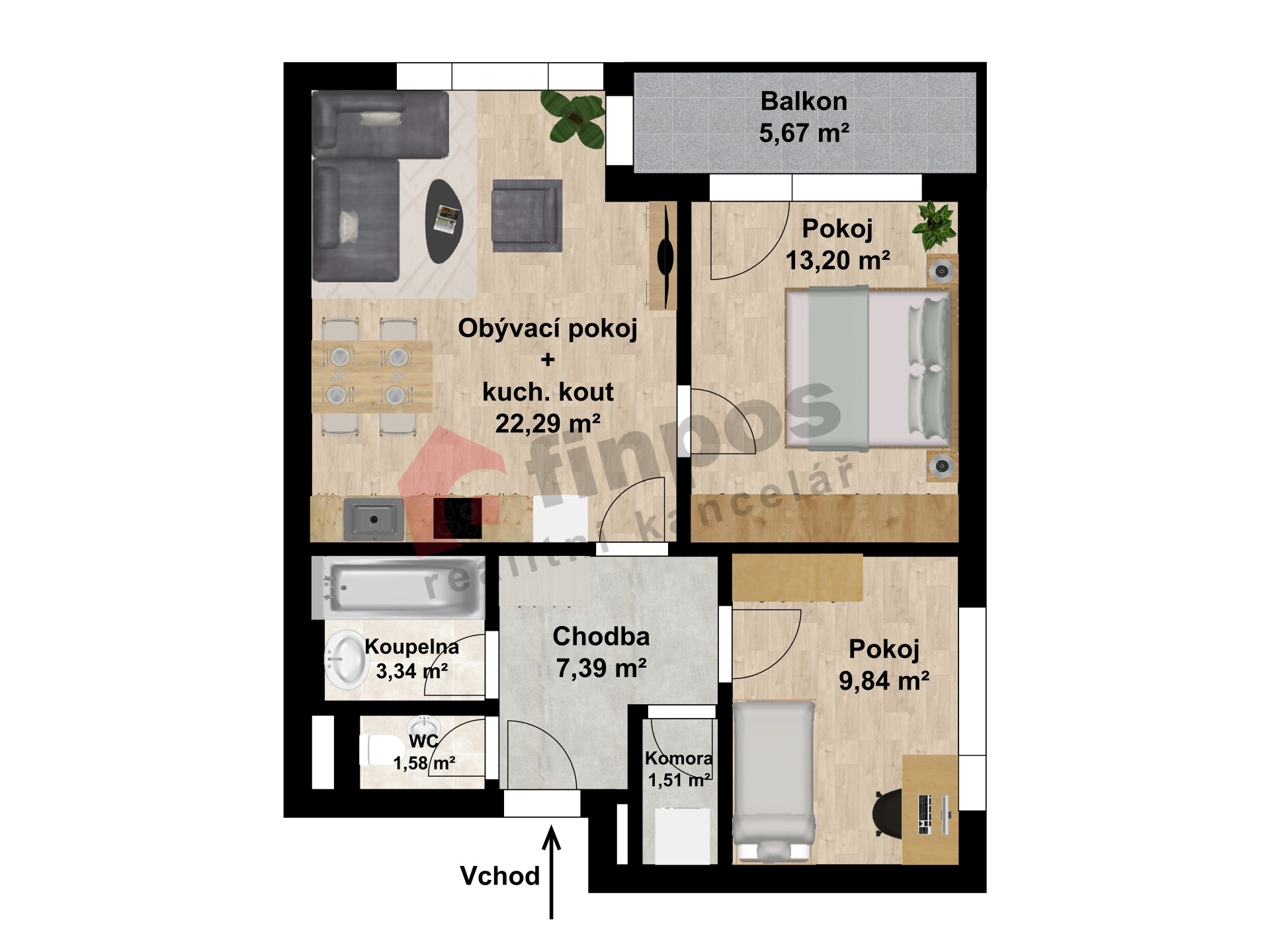 | Dispozice/podlahová plocha: | 3+kk/62 m² |