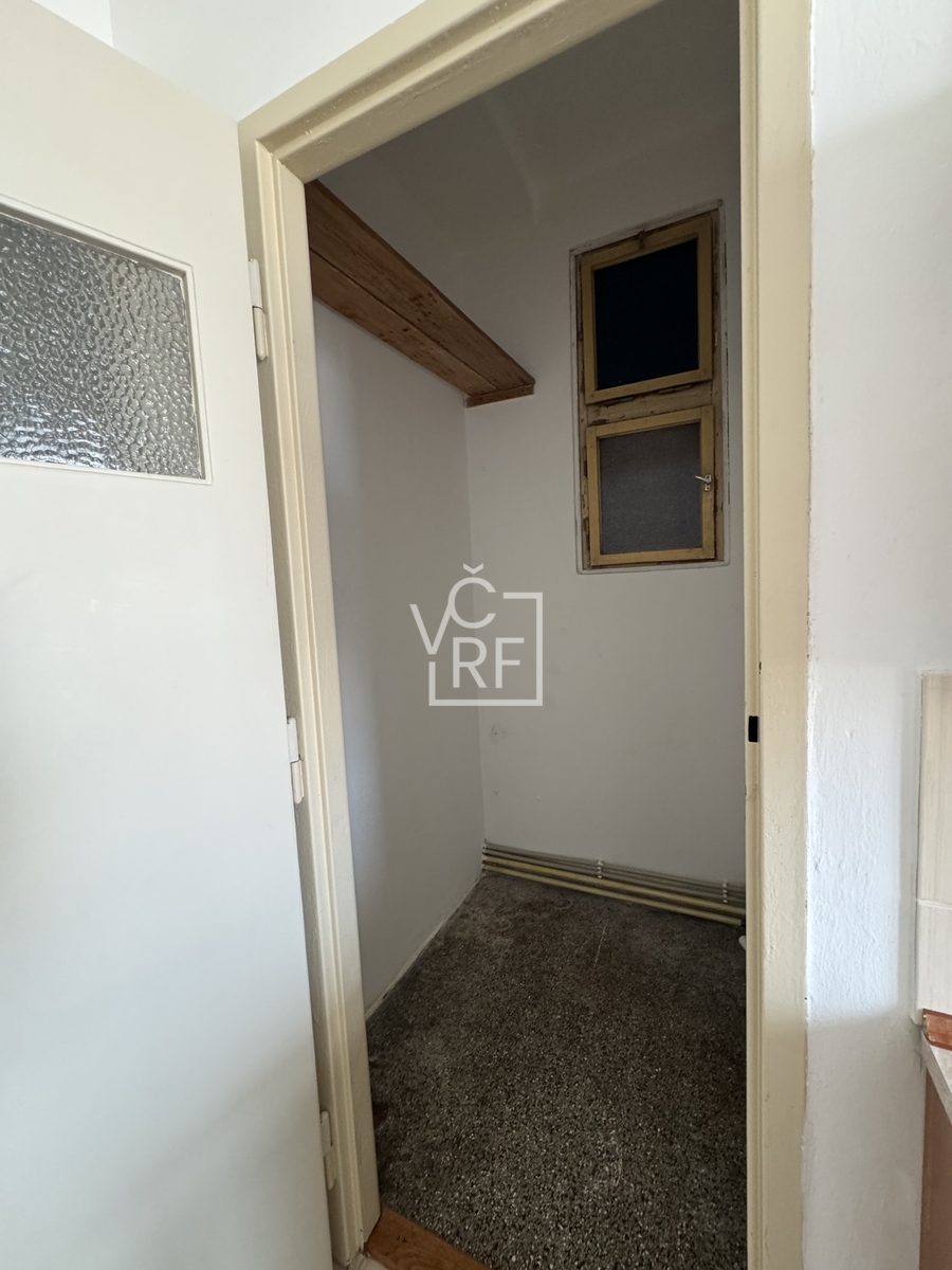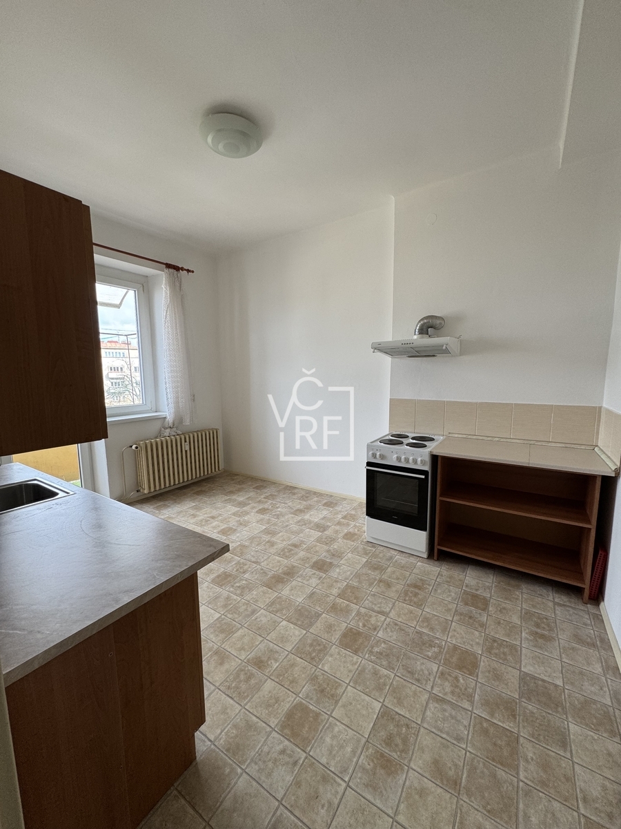 vstupní hala s komorou, dva samostatné, průchozí pokoje se vstupem na balkon 6 m2, dále samostatné WC, koupelna s vanou a obytná kuchyň s balkonem 1,5 m2 do dvora a dvě komory. Byt je nezařízený, k dispozici je pouze kuchyňská linka se sporákem.