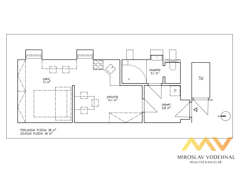 | Dispozice/podlahová plocha: | 2+kk/38 m² |
