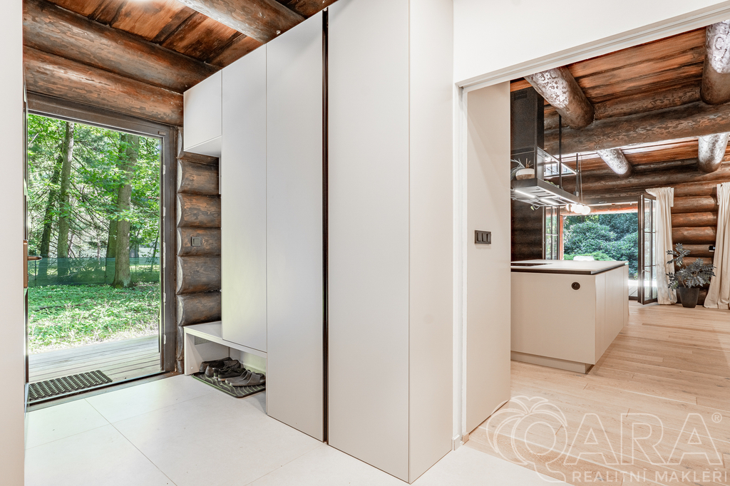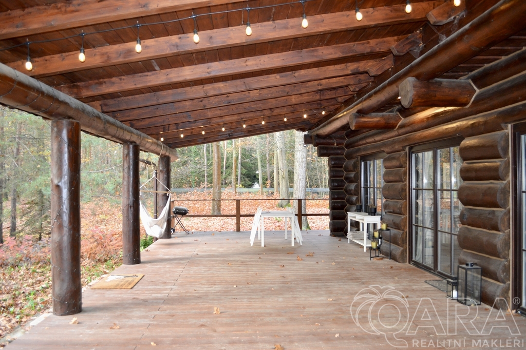Moderní srub 4+kk, 156 m² s terasou 100 m² na lesním pozemku 4 830 m² – Kersko, 20 min od Prahy