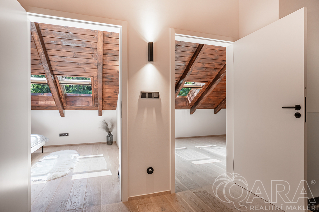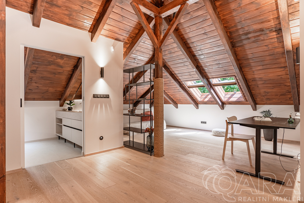 • Otevřené atrium (27 m²) využité jako pracovna/společenská místnost, s možností přestavby na třetí ložnici