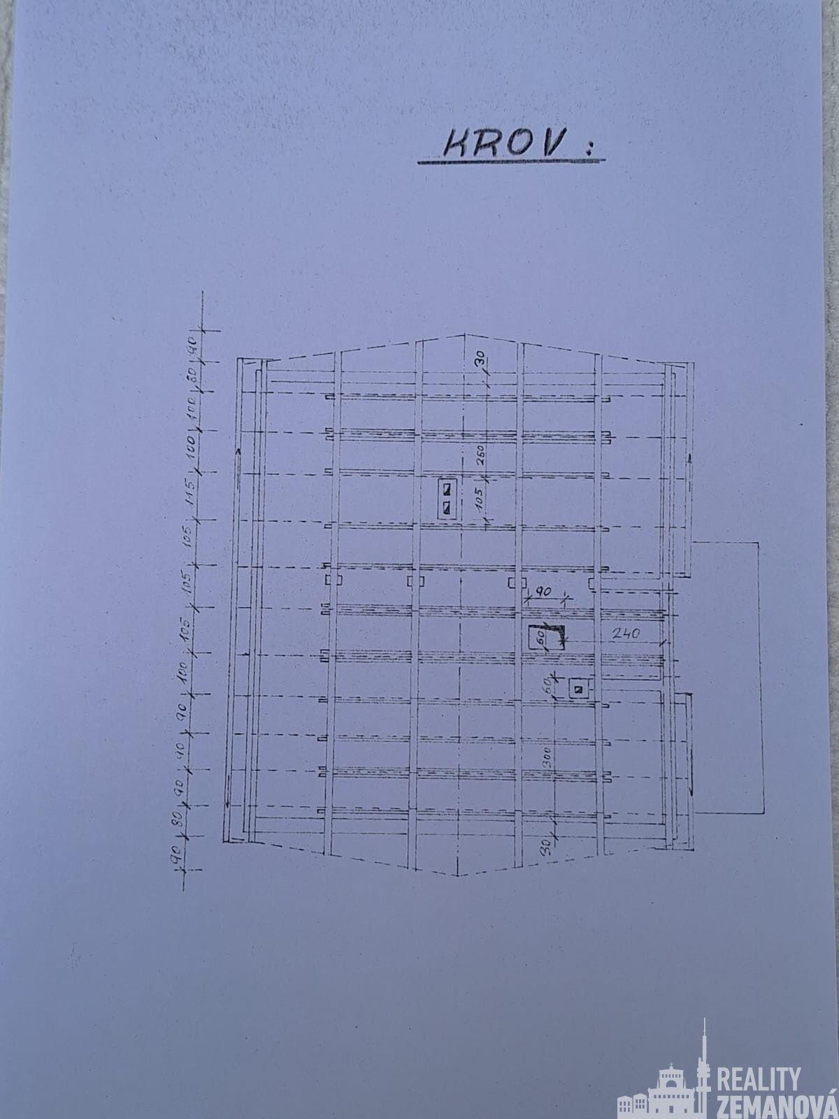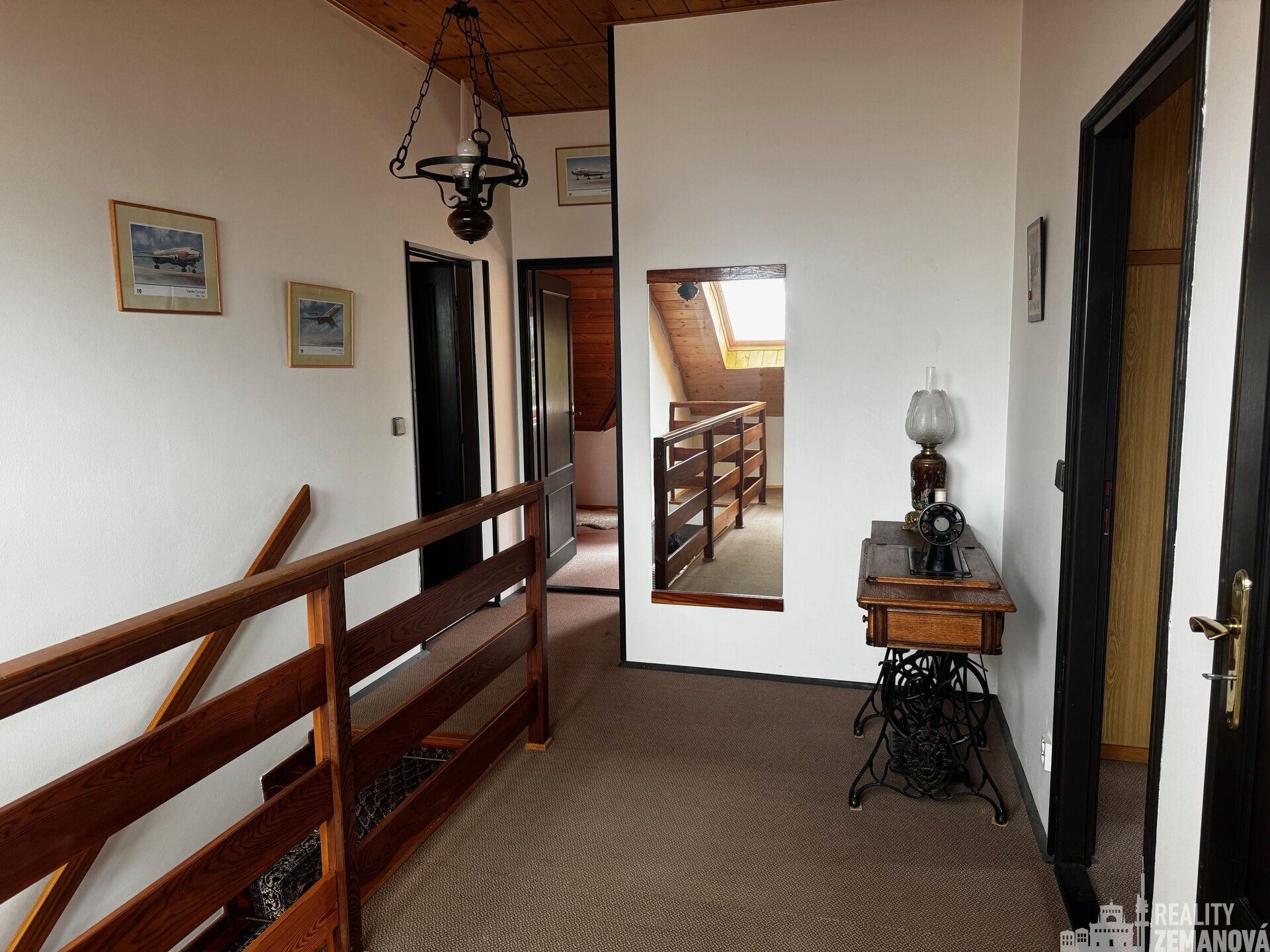 Podkroví: tři samostatné pokoje, koupelna, WC a centrální hala.