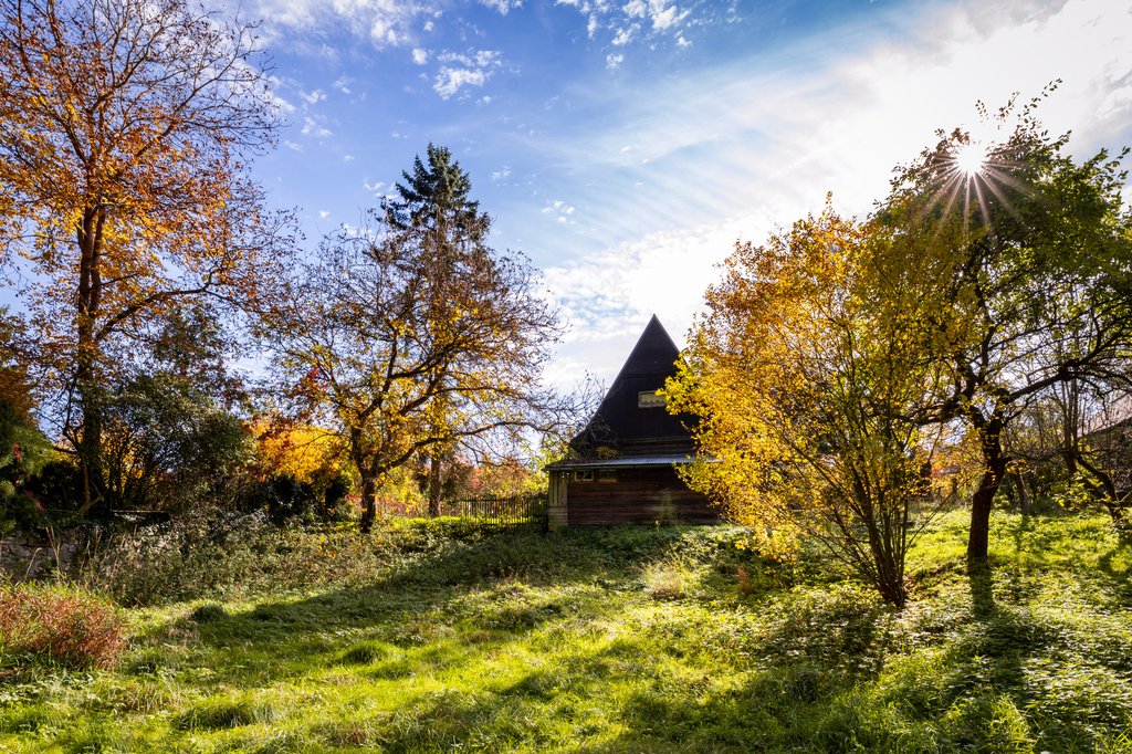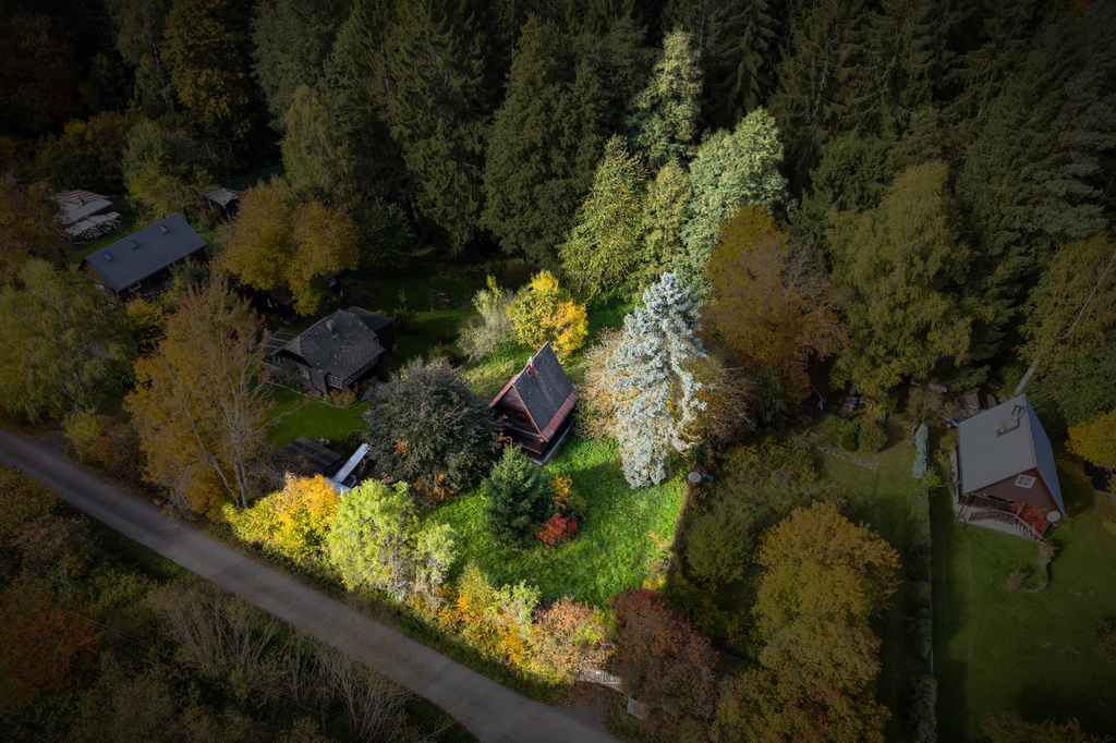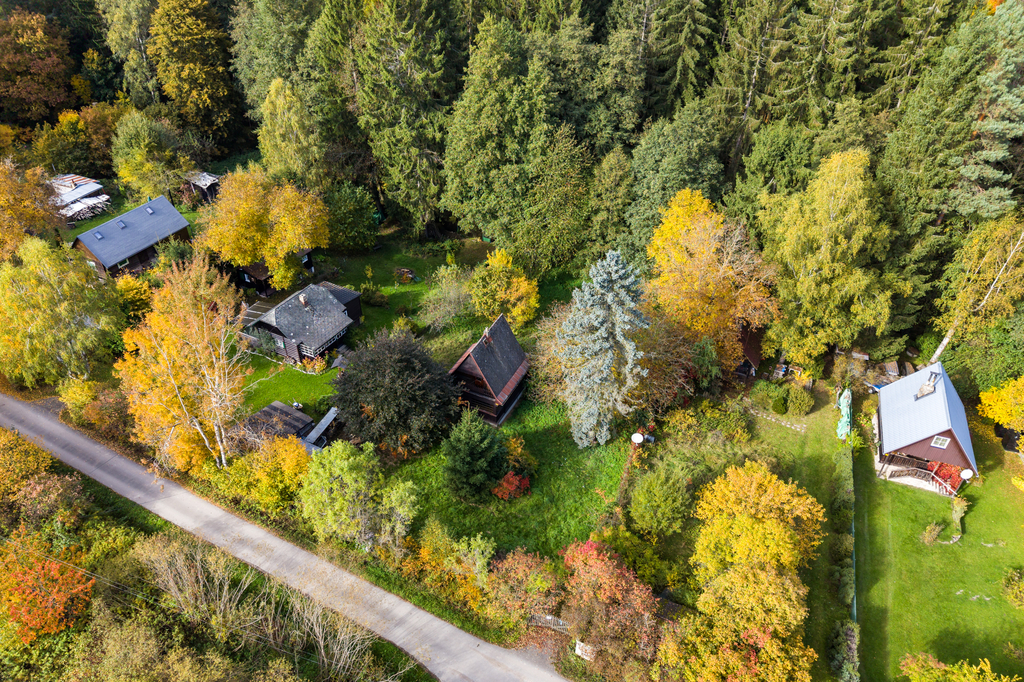 Pozemek je částečně rovinatý a ve spodní části se svažuje k Hůreckému potoku, který jím protéká a dodává mu tak jedinečnou atmosféru. Mezi chatou a potokem je dostatečný výškový rozdíl, díky čemuž se objekt nachází v bezpečné výšce nad terénem.