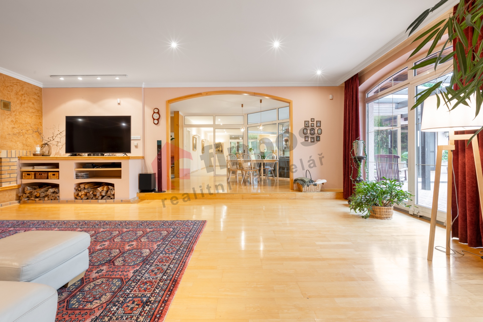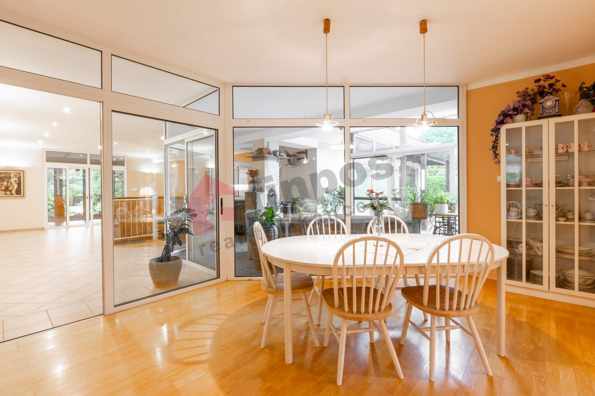 Mezi terasou a obytnou částí domu se nachází zimní zahrada, která nabízí další prostor pro relaxaci a odpočinek. V této zimní zahradě je umístěna vířivka, která poskytuje dokonalé místo pro relaxaci po celý rok.